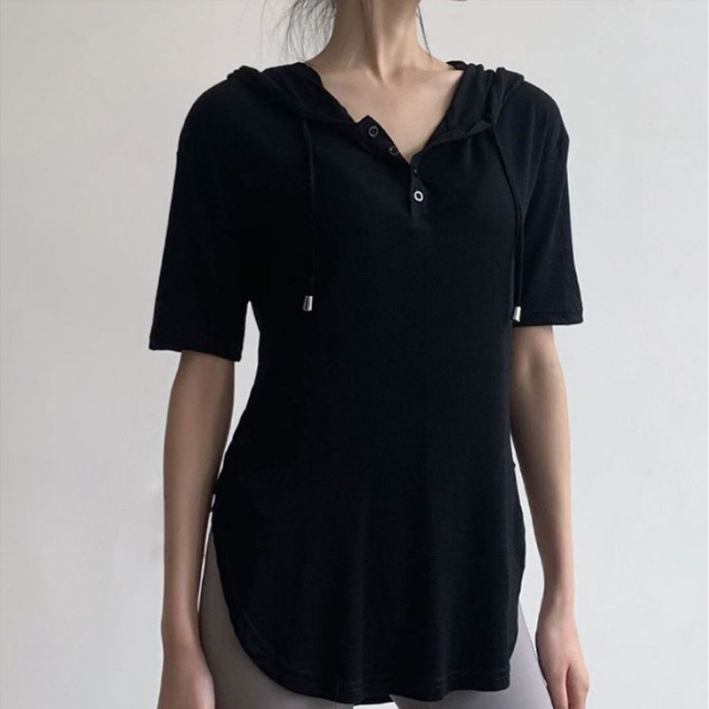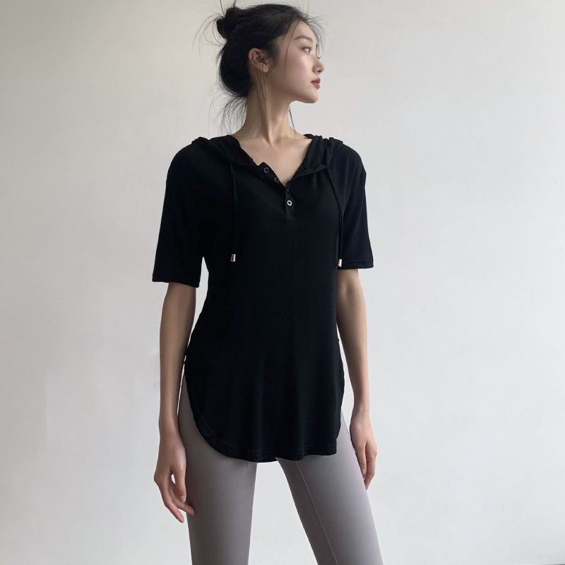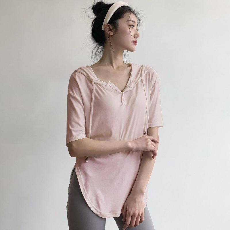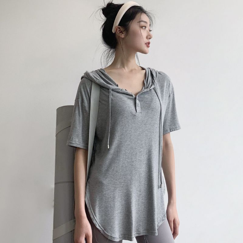 BY16400# 原版韩系连帽运动上衣女夏季普拉提宽松百搭显瘦罩衫t恤瑜伽服潮 服裝批發女裝批發服飾貨源