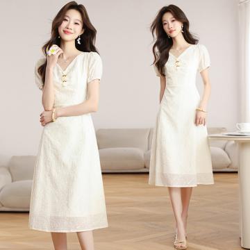 BY16452# 法式茶歇初恋连衣裙夏薄款特别温柔风收腰V领锁骨仙女裙子 服裝批發女裝批發服飾貨源