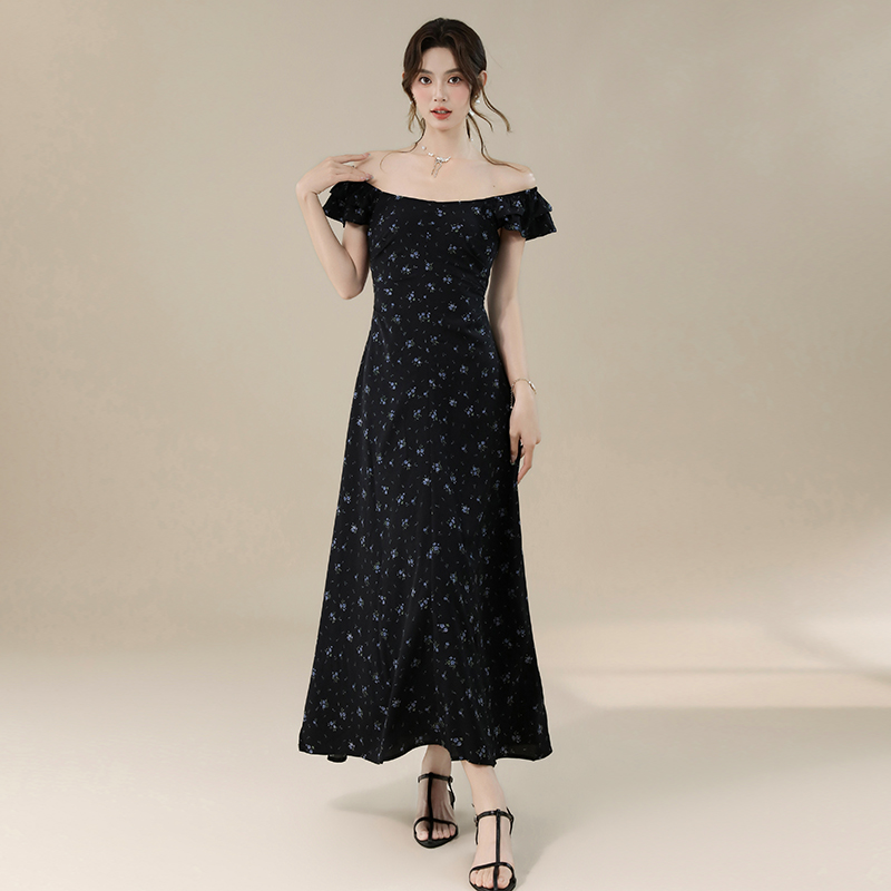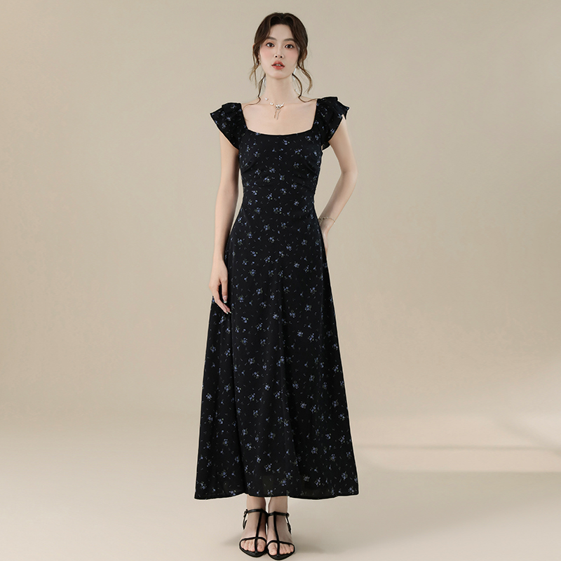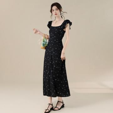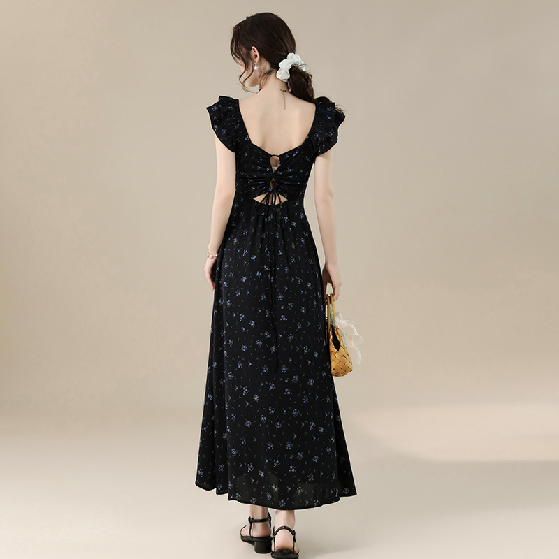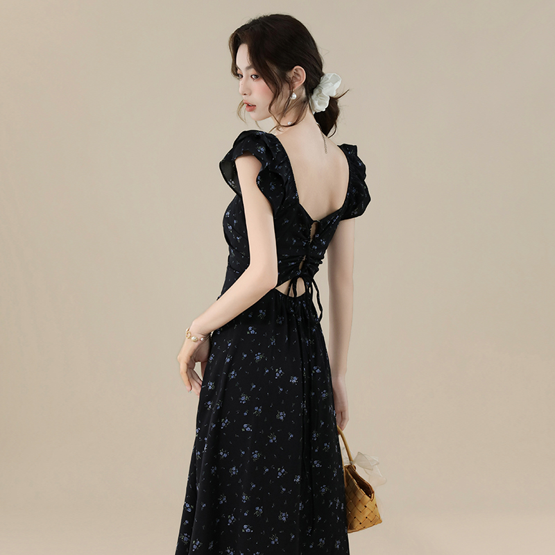 BY16694# 爆款延续法式甜美气质度假风碎花露背设计感连衣裙