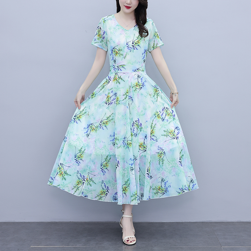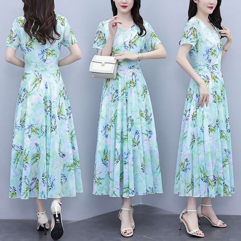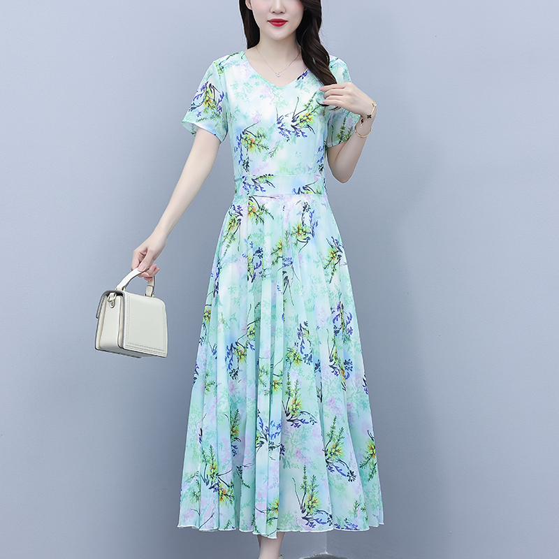 时尚气质短袖连衣裙夏季新款简约遮肚洋气显瘦中长款裙子 服裝批發女裝批發服飾貨源