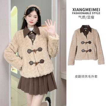 FA51091# 羊羔毛外套女秋冬小香风毛毛复古宽松夹棉毛绒 服裝批發女裝批發服飾貨源