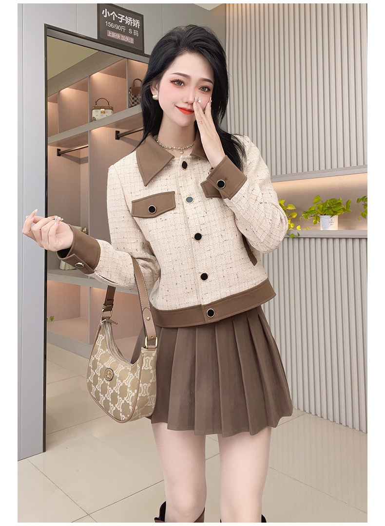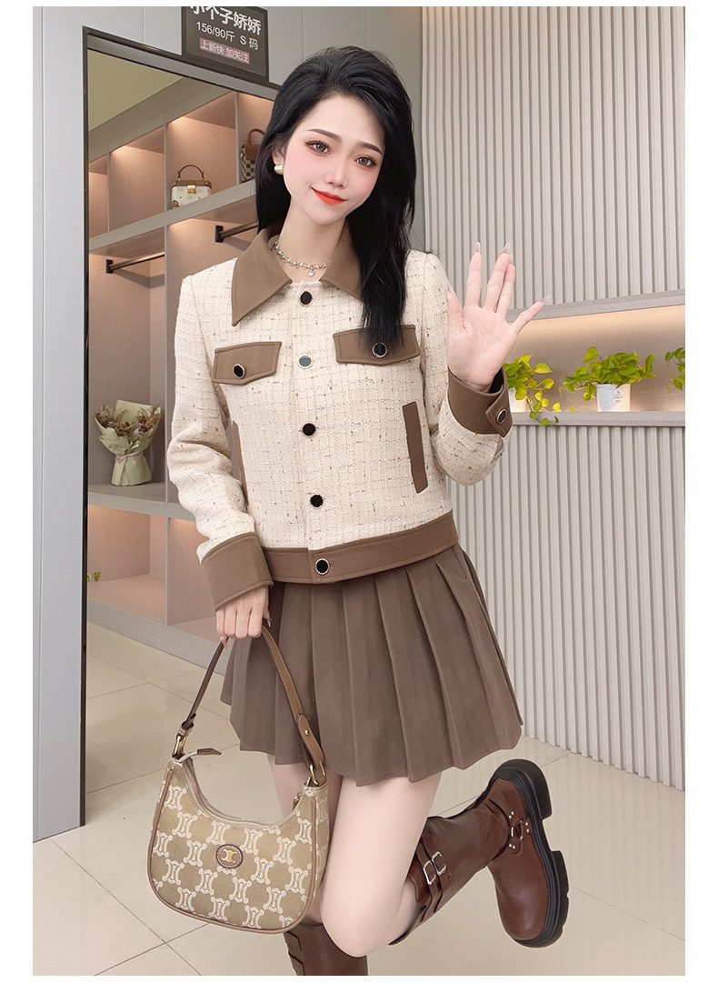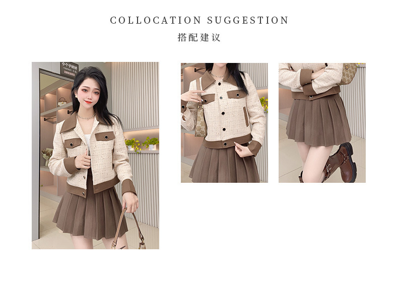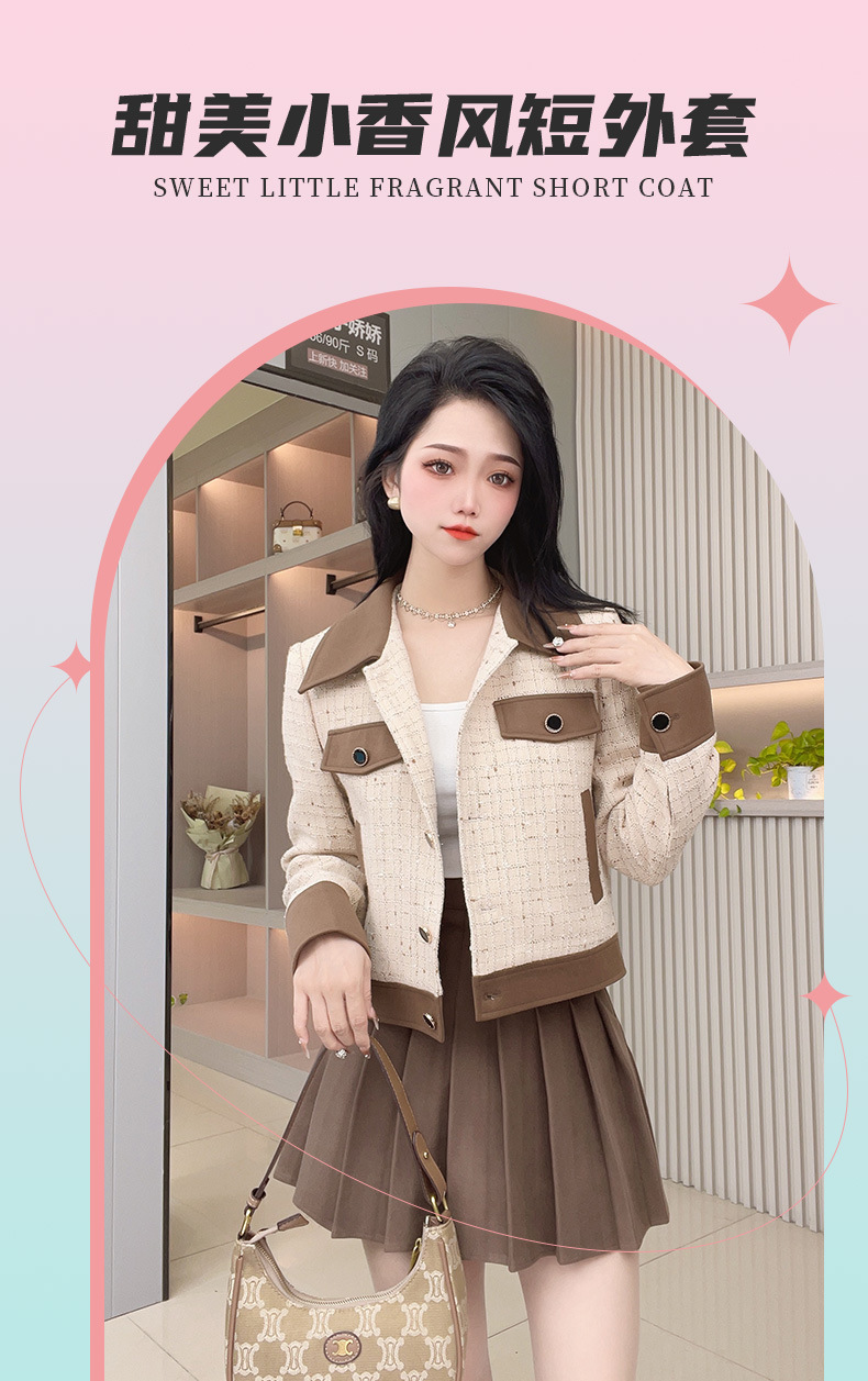 FA51093# 法式小香风重工拼色单排扣翻领短外套 服裝批發女裝批發服飾貨源