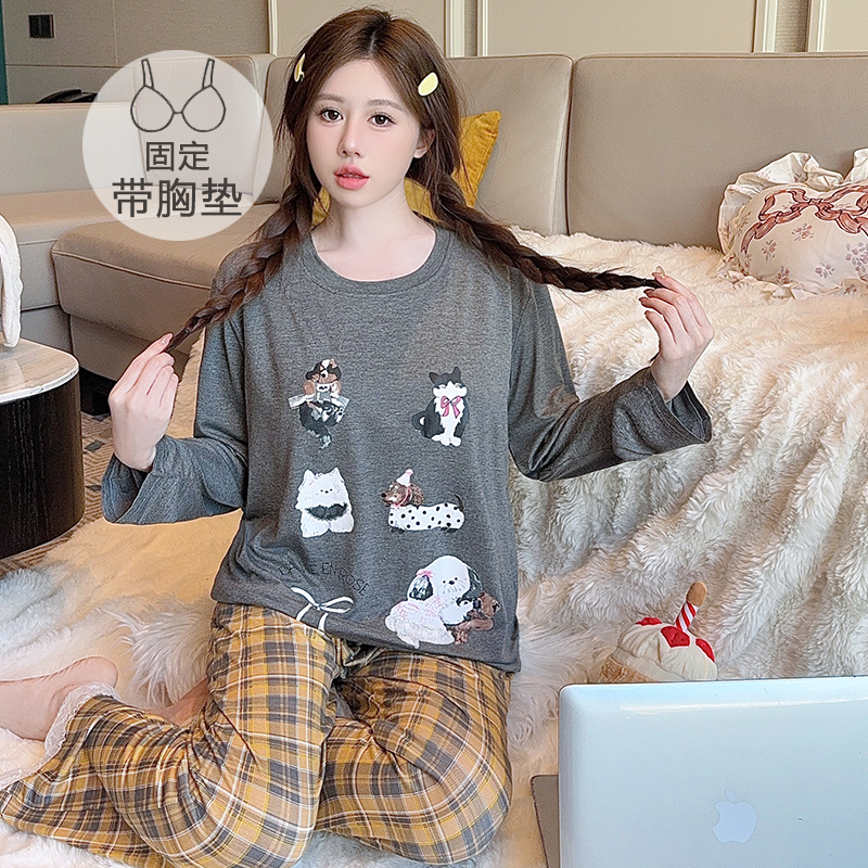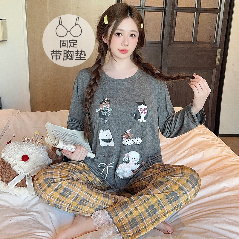 Home > 文胸、睡衣、假发、饰品 > FA41827# 莫代尔睡衣女春秋季休闲公主风带胸垫长袖长裤加大码220斤家居服 服裝批發女裝批發服飾貨源