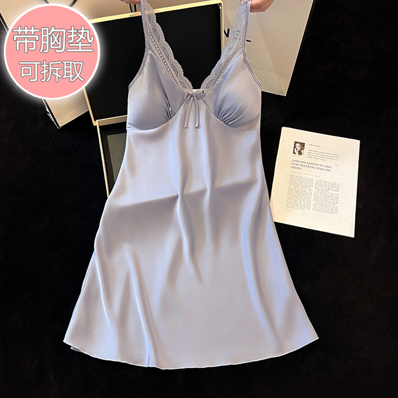 FA41831# 冰丝夏季甜美小性感吊带带胸垫中长宽松睡裙气质家居服网红可外穿 服裝批發女裝批發服飾貨源