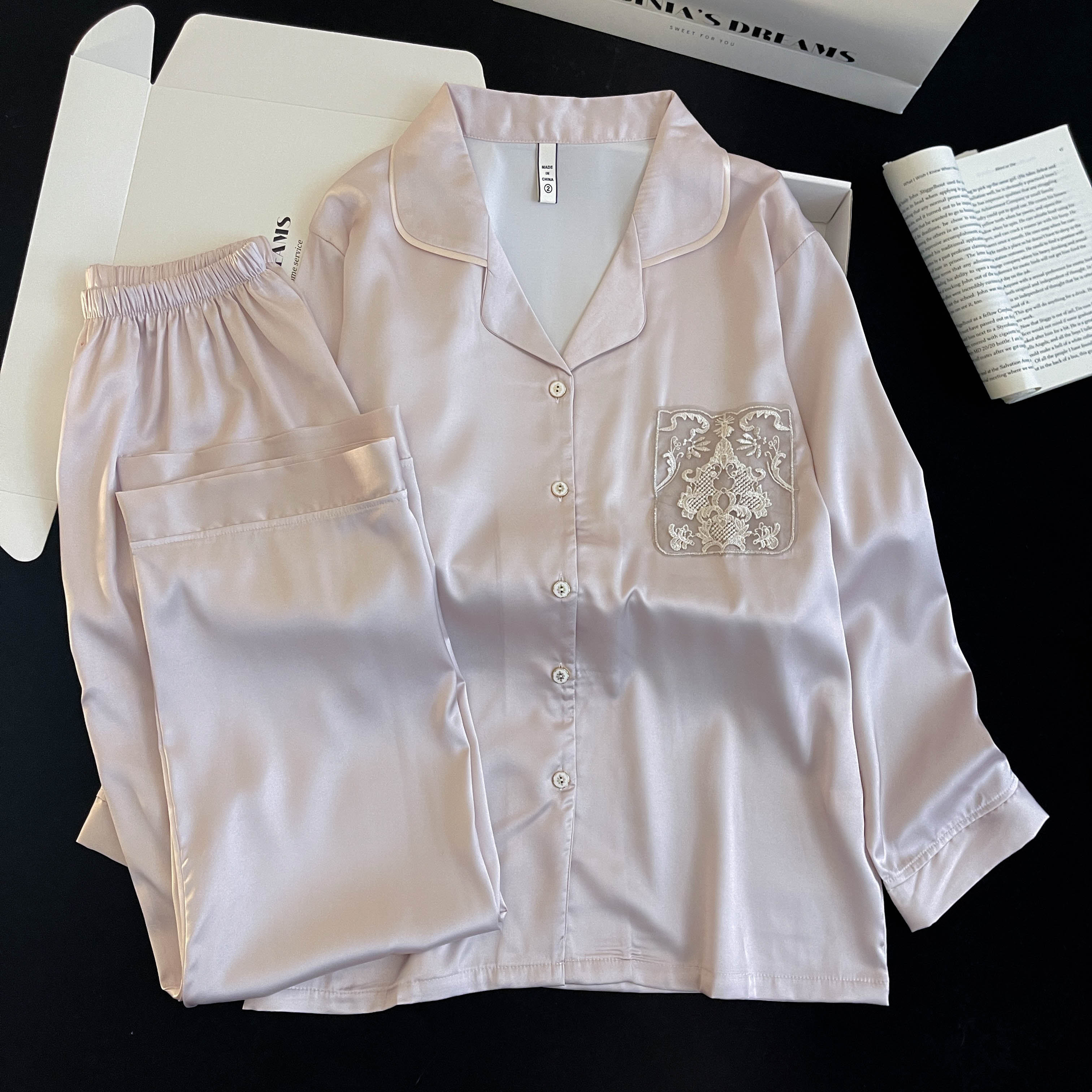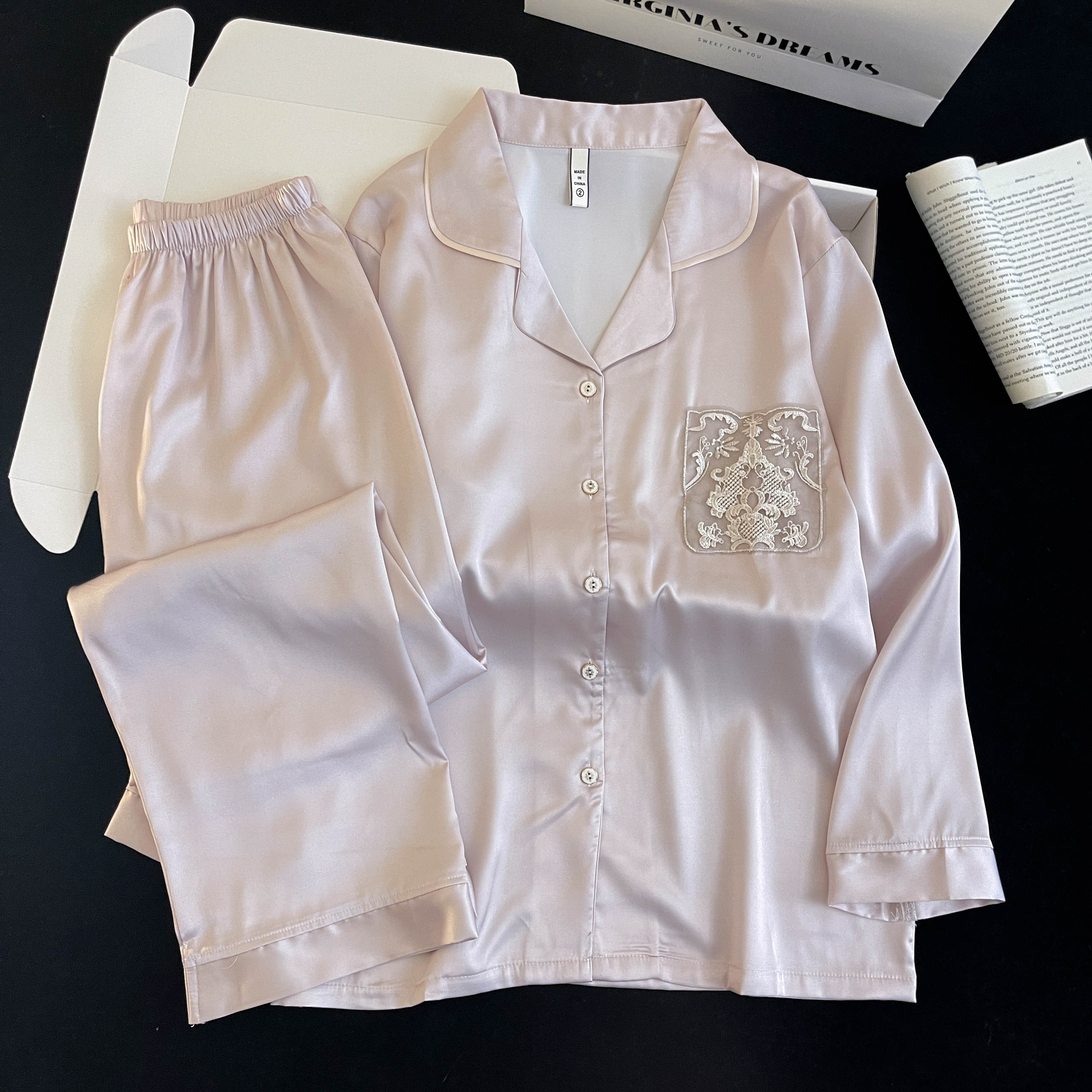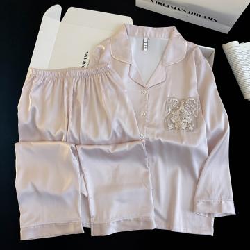 FA41835# 春夏新款冰雪丝长袖长裤女款两件套简约纯色翻领开衫家居服 服裝批發女裝批發服飾貨源