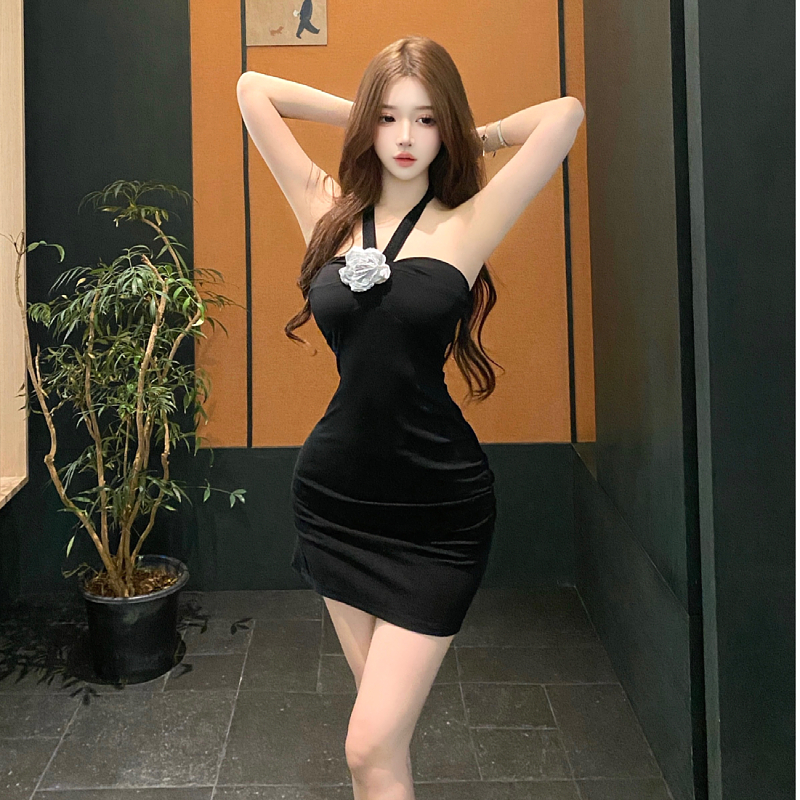 FA42057# 收腰内搭挂脖抹胸连衣裙秋冬新款性感纯欲显瘦气质包臀短裙子