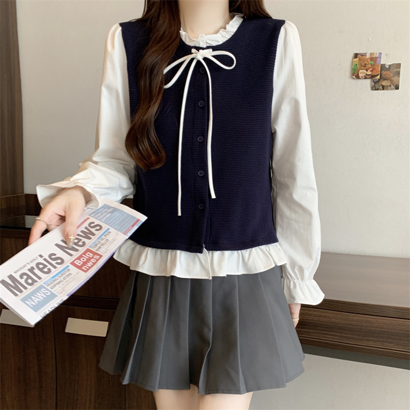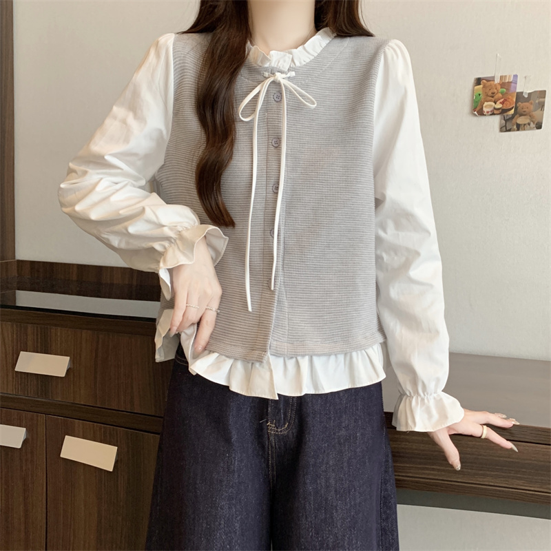 FA42074# 新款大码女装胖MM设计感拼接假两件百搭显瘦衬衫上衣