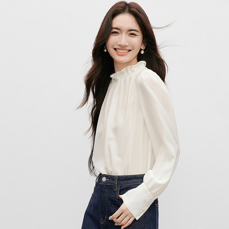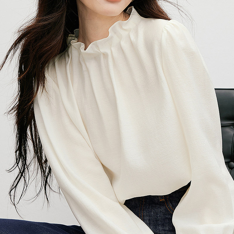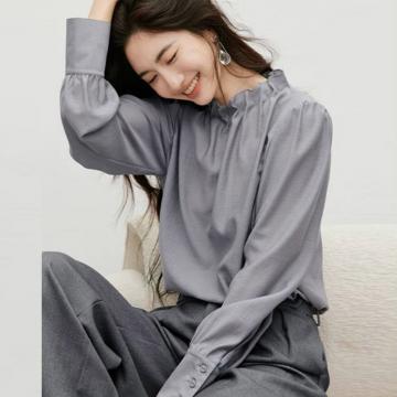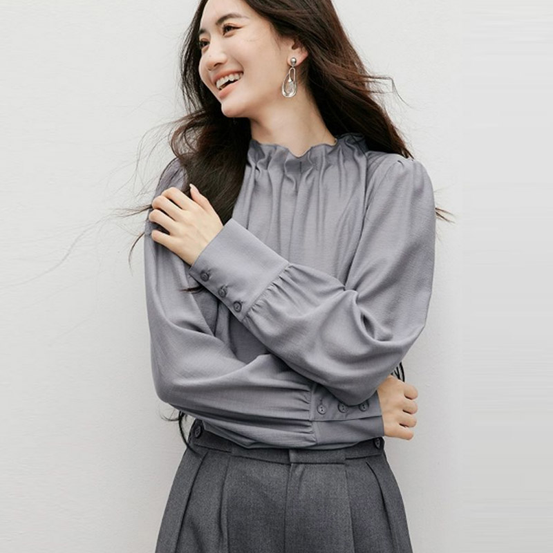 FA42152# 复古宫廷风雪纺衫春秋季新款女装纯色气质立体花苞领长袖上衣