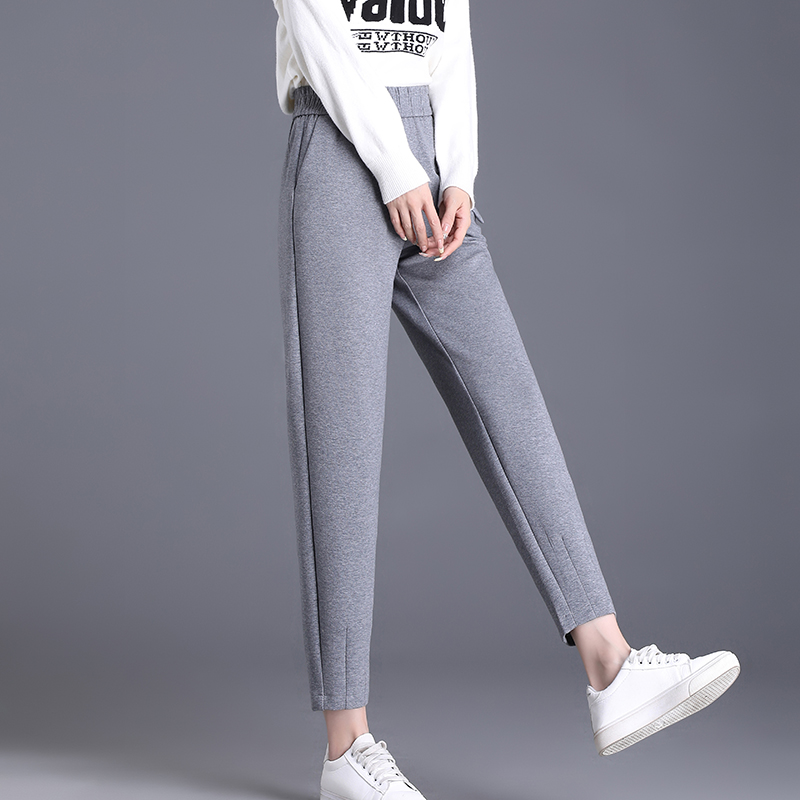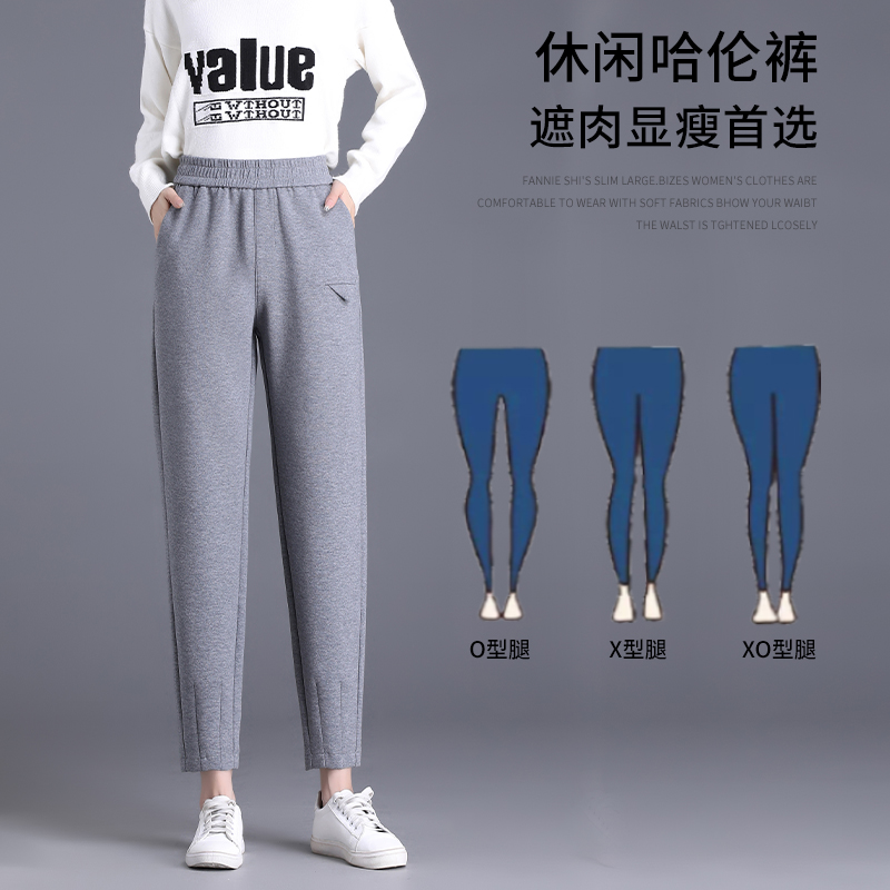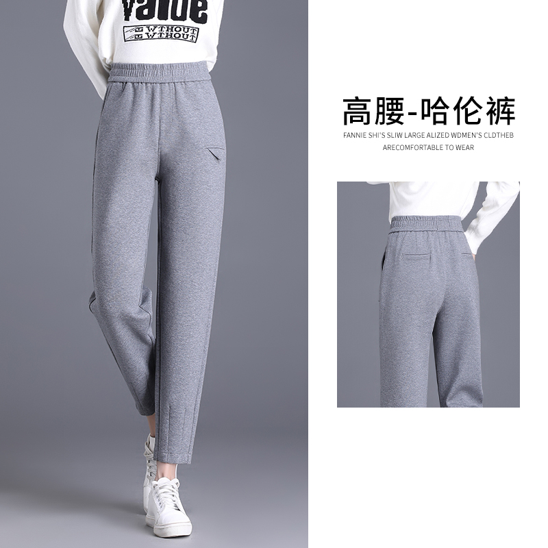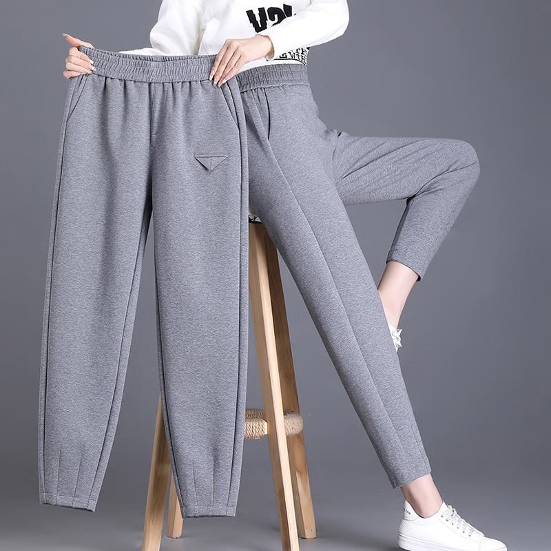 FA42179# 松紧腰运动裤秋冬新款长裤纯色重休闲百搭高腰哈伦裤女