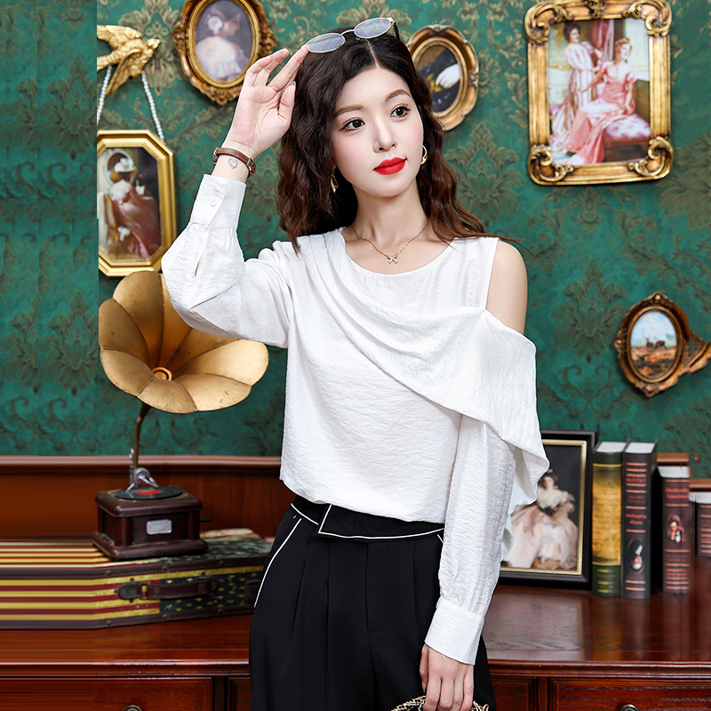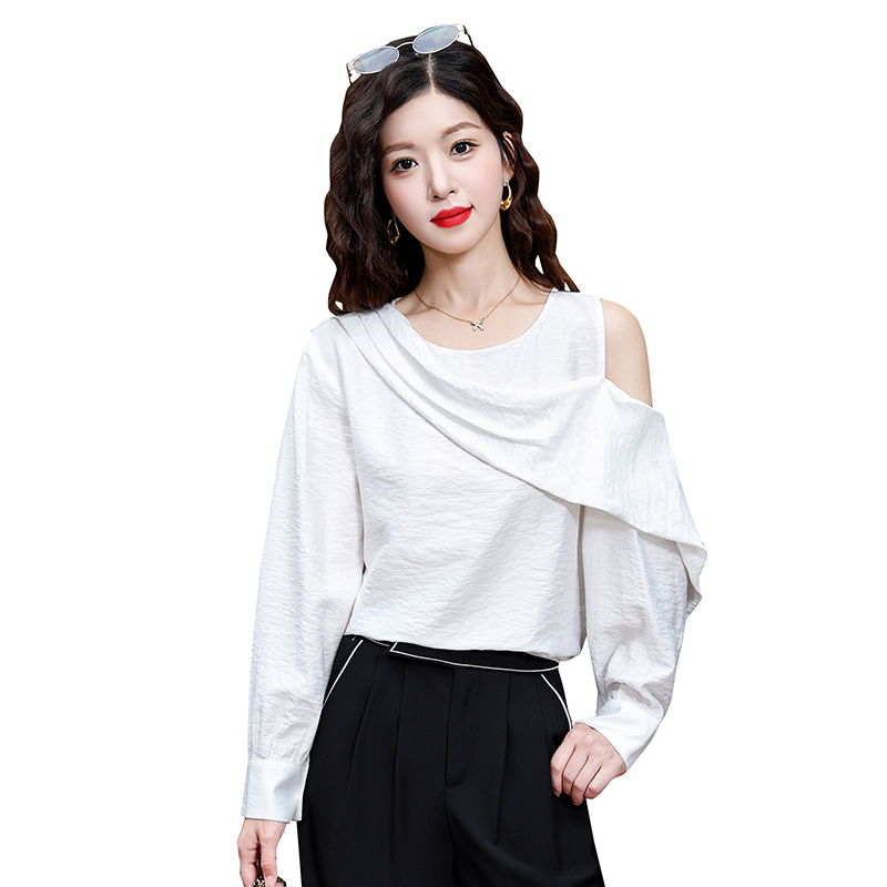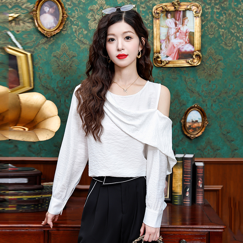 FA42194# 难忘白月光高智感不对称露肩设计衬衫休闲上衣
