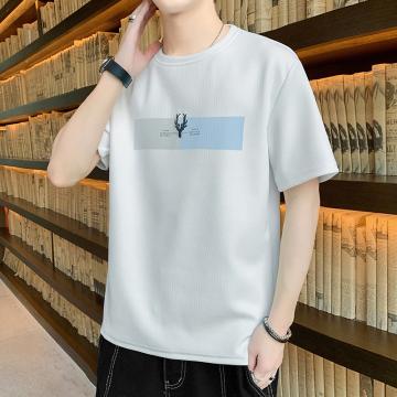FA42281# 爆款低价跑量法国罗纹短袖男新款夏季运动休闲上衣宽松潮流喷印T恤圆领轻薄打底衫 男装批发