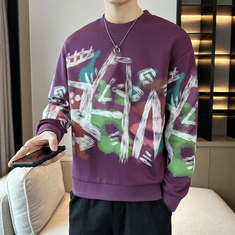 FA42330# 男士卫衣春秋季新款潮牌圆领印花长袖T恤宽松男装 男装批发