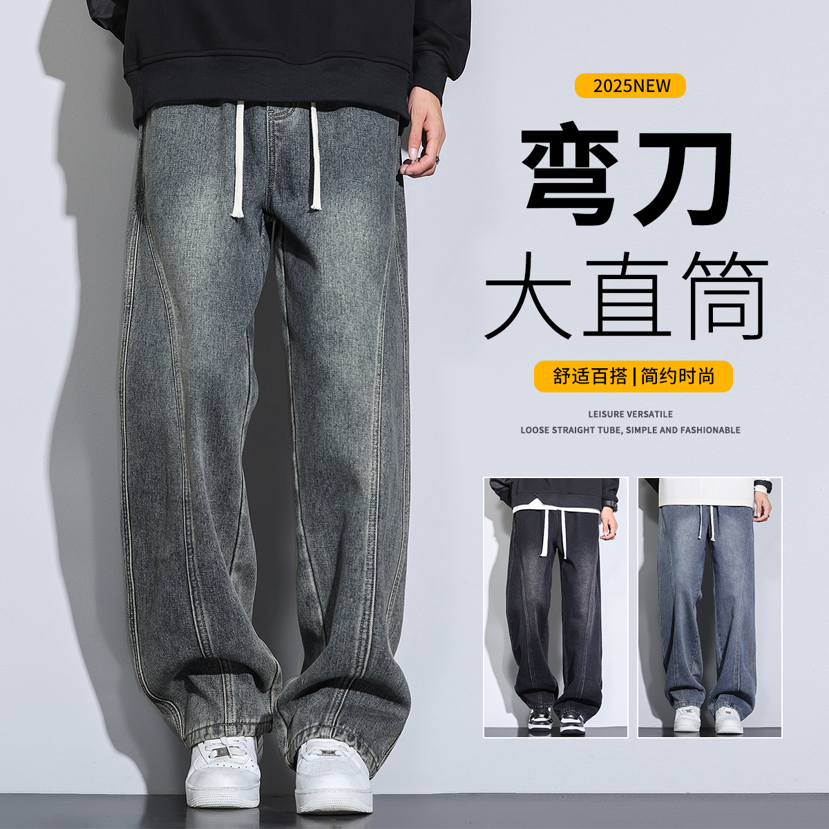 FA42348# 秋季新款男士时尚潮牌牛仔裤男韩版休闲裤子男直筒牛仔长裤 男装批发