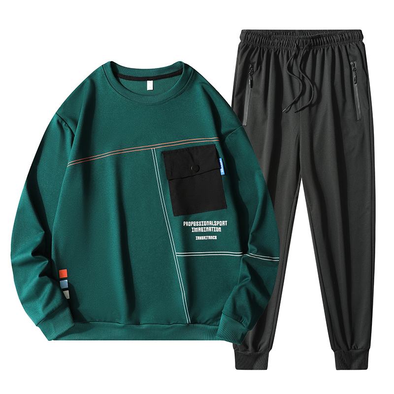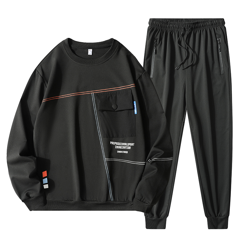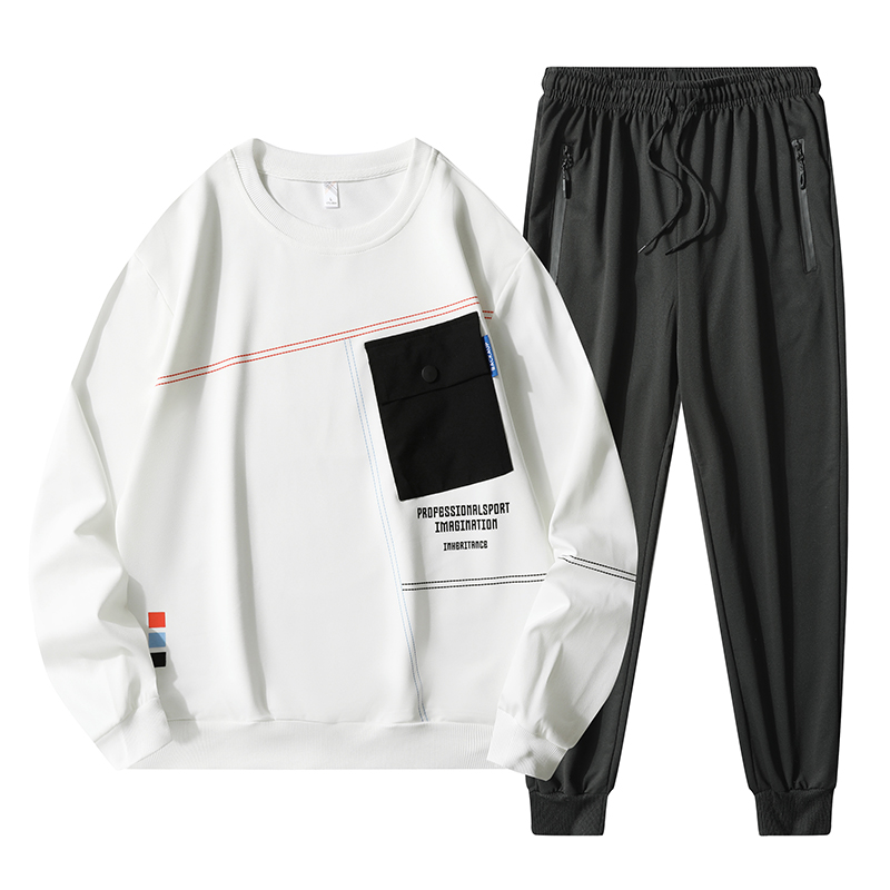 FA42365# 年高品质春秋新款时尚拼色套装青年圆领运动套装卫衣帅气搭配束脚裤两件套 男装批发