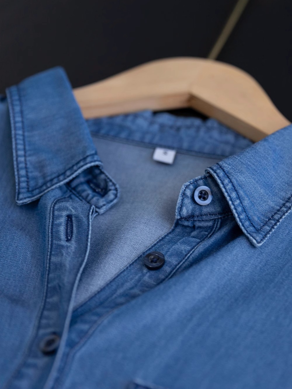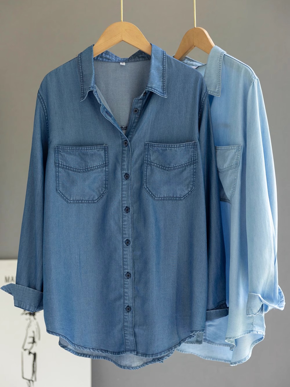 FA42457# 外贸出口高端水洗牛仔衬衫女设计感小众宽松百搭叠穿衬衣垂感打底 服裝批發女裝批發服飾貨源