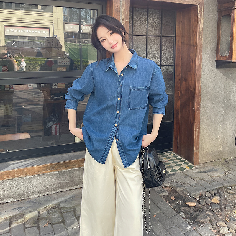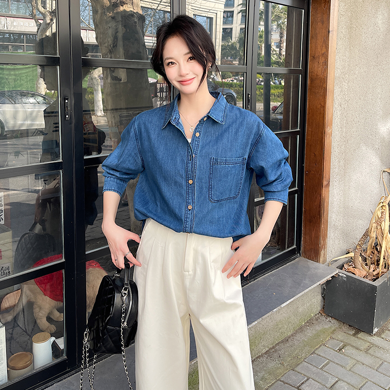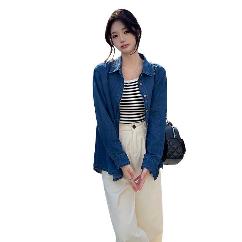 FA42458# 好质量修身纯棉牛仔衬衫女春秋季正肩显瘦衬衣内搭叠穿打底衫 服裝批發女裝批發服飾貨源