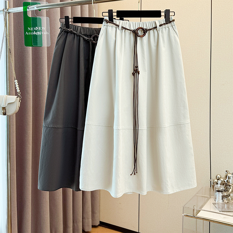 FA42610# 新款春秋韩版宽松配腰带休闲半身裙松紧腰百搭法式显瘦高腰伞裙 服裝批發女裝批發服飾貨源