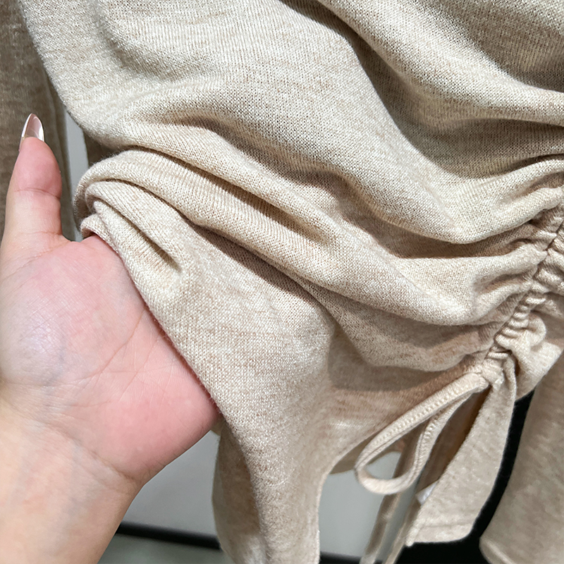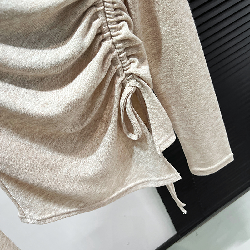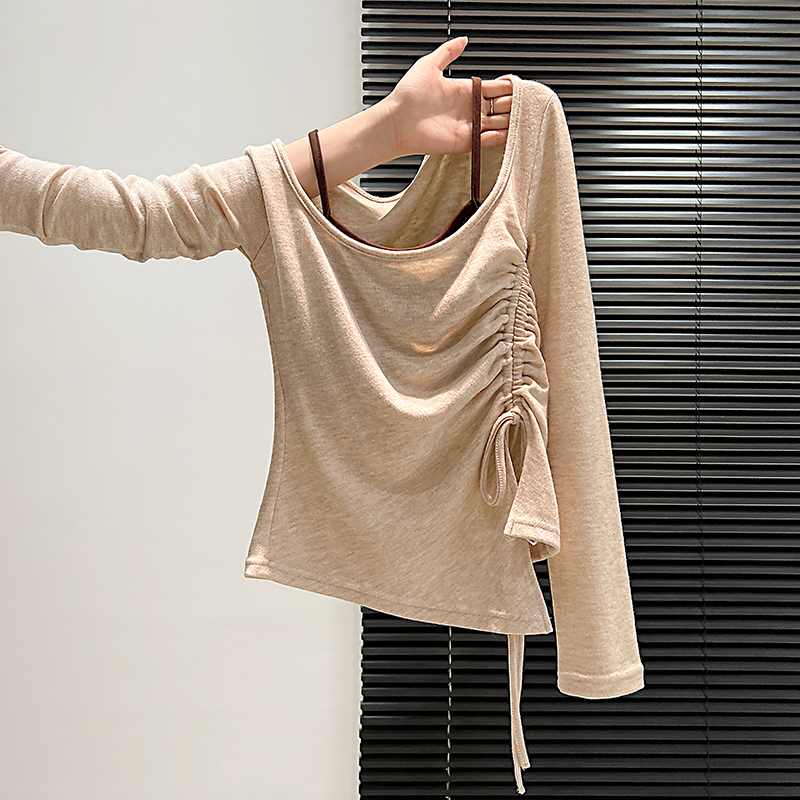 FA42635# 撞色假两件长袖t恤女新款秋季打底衫拼接抽绳收腰 服裝批發女裝批發服飾貨源