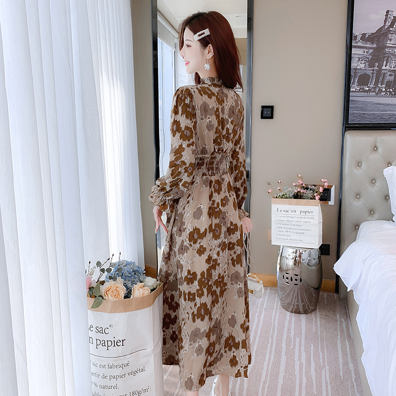 FA42965# 秋季法式复古印花雪纺连衣裙女中长款减龄显瘦日常百搭打底裙 服裝批發女裝批發服飾貨源