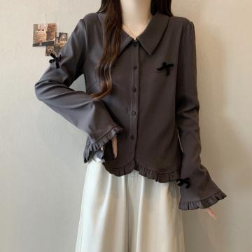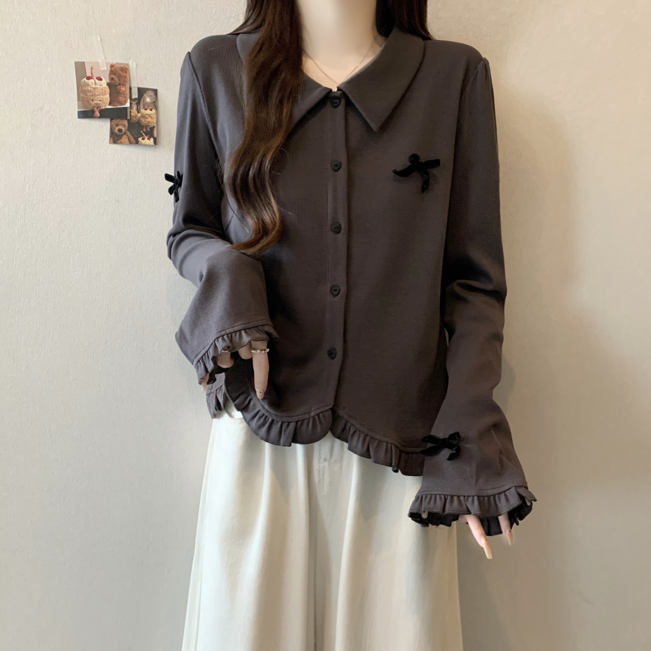 FA43052# 大码翻领立体蝴蝶结T恤女秋季新款打底内搭荷叶边上衣 服裝批發女裝批發服飾貨源