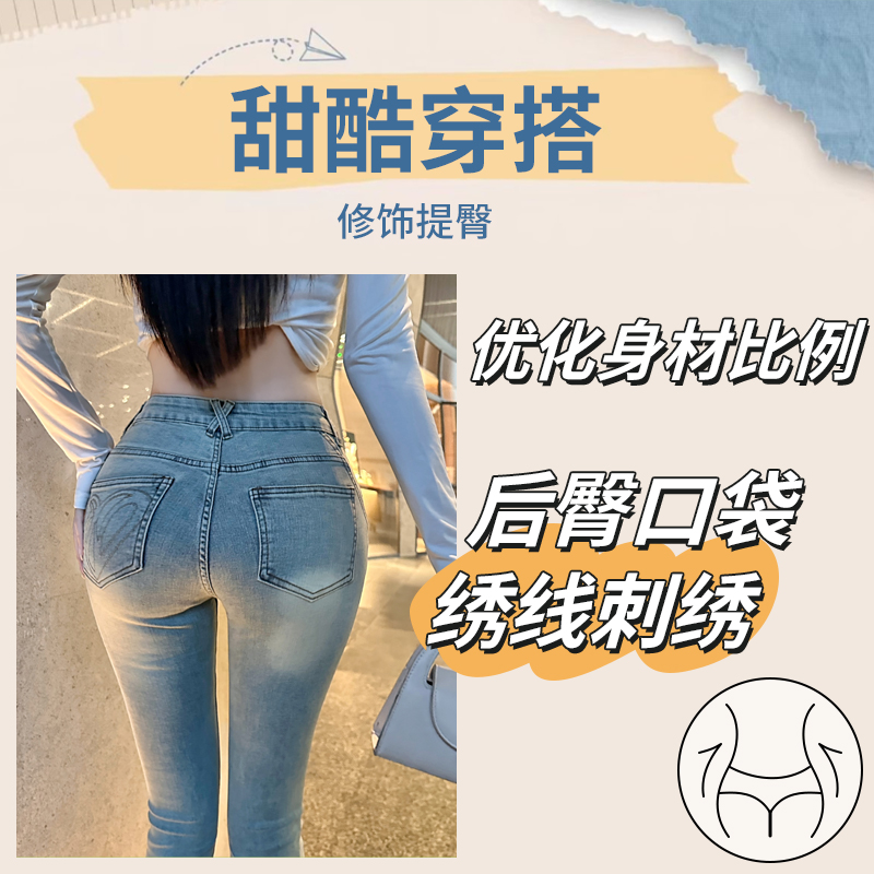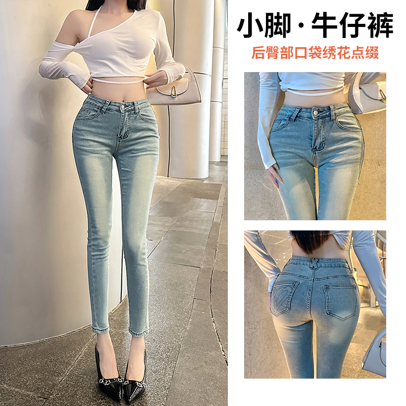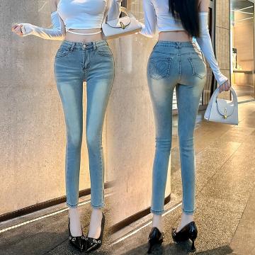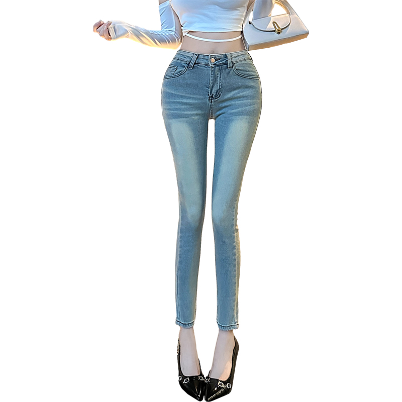 FA43097# Hotdog热狗很辣韩女牛仔裤浅蓝色牛仔裤时尚百搭显瘦小脚裤 服裝批發女裝批發服飾貨源