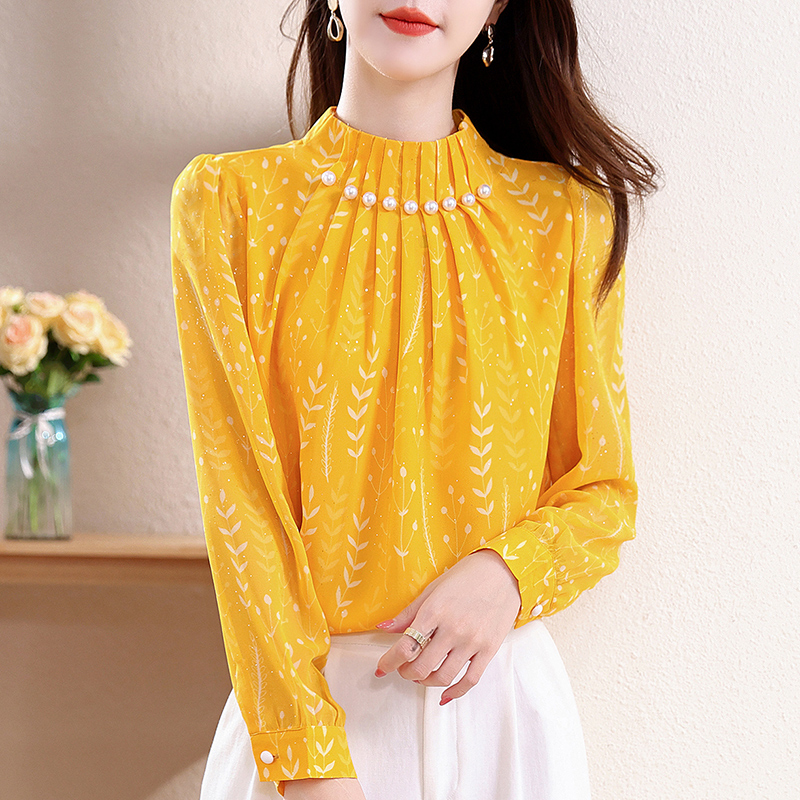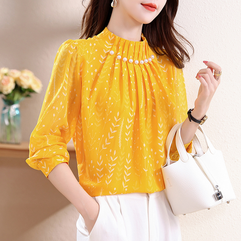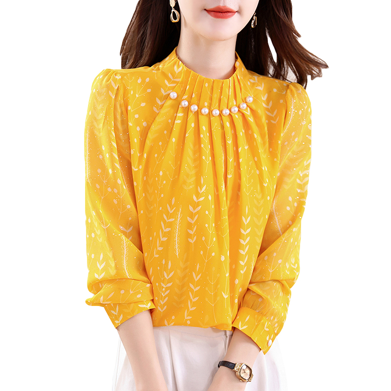 FA43194# 新款原版正品显瘦气质衬衫秋冬重工珍珠洋气显瘦小衫 服裝批發女裝批發服飾貨源