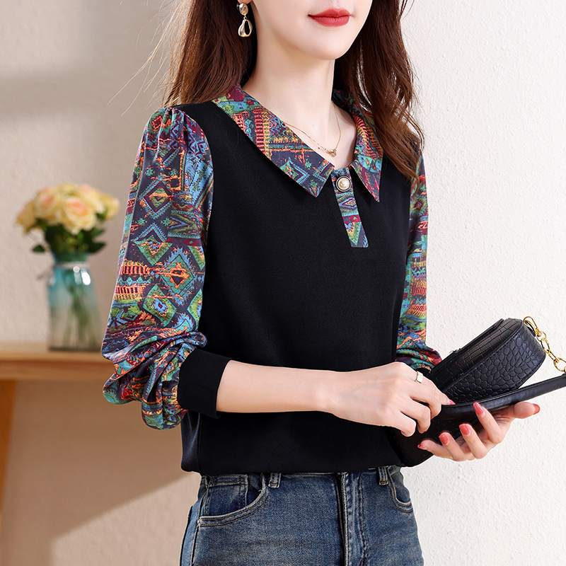 FA43197# 娃娃领印花衬衫女秋季新款气质百搭减龄假两件上衣 服裝批發女裝批發服飾貨源