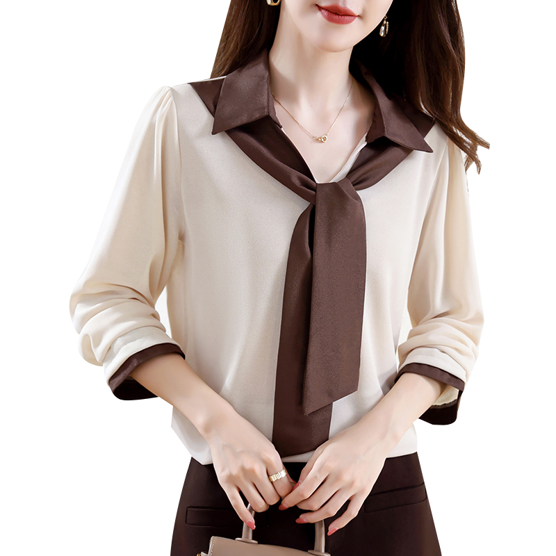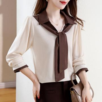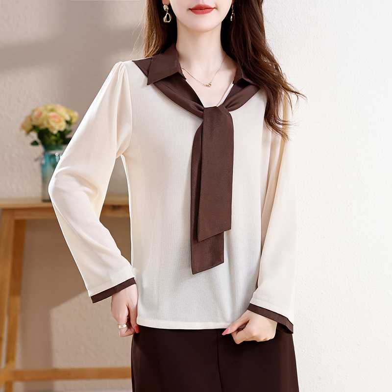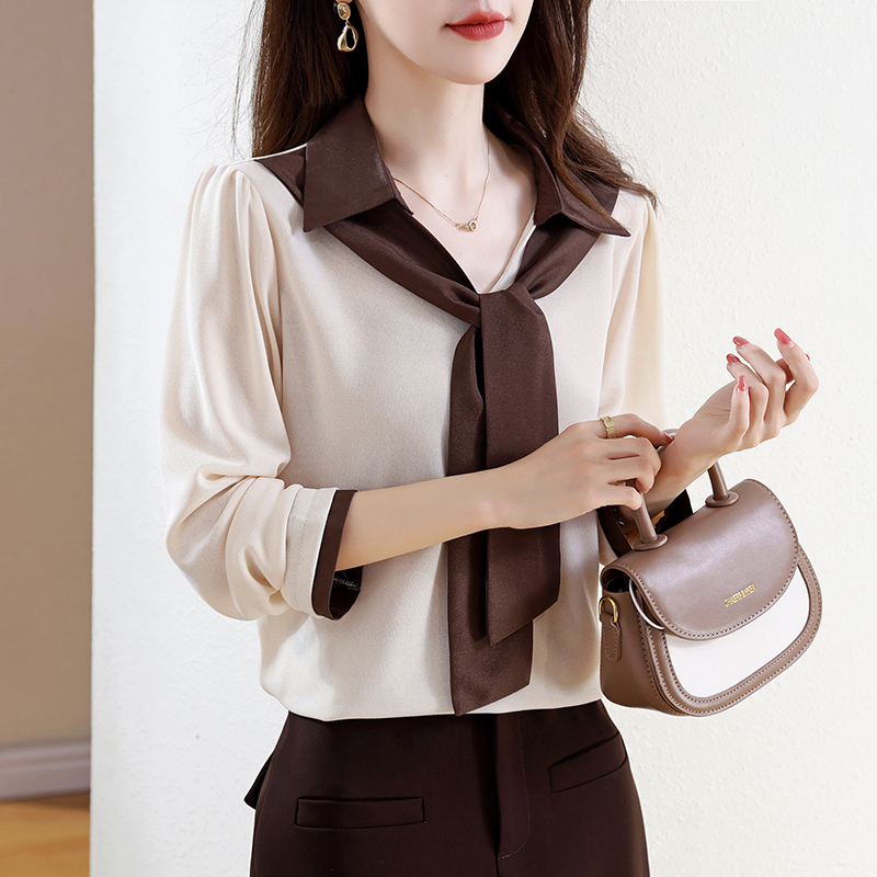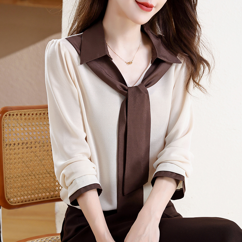 FA43198# 飘带衬衫女秋冬季新款长袖假两件时尚高级感减龄显瘦上衣 服裝批發女裝批發服飾貨源