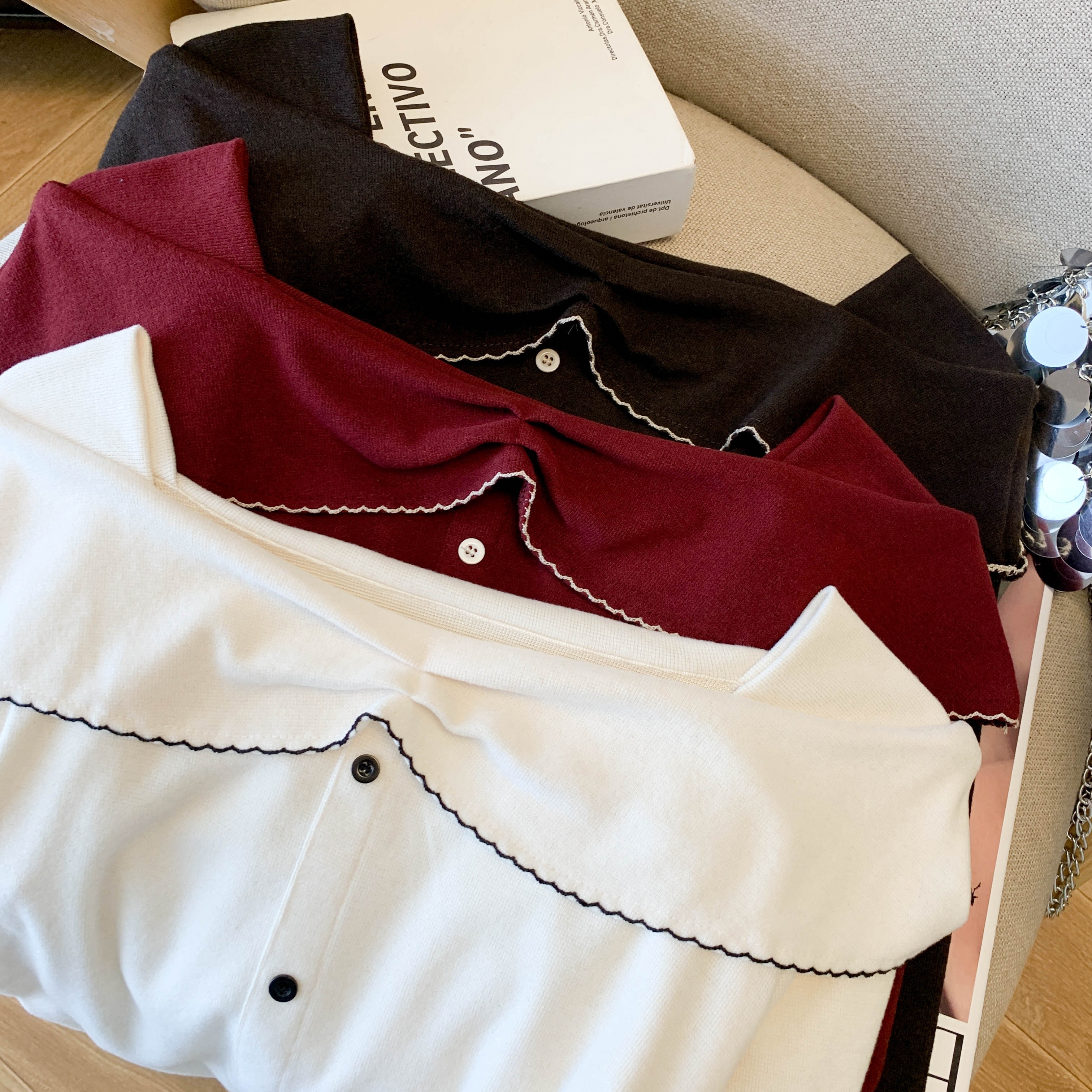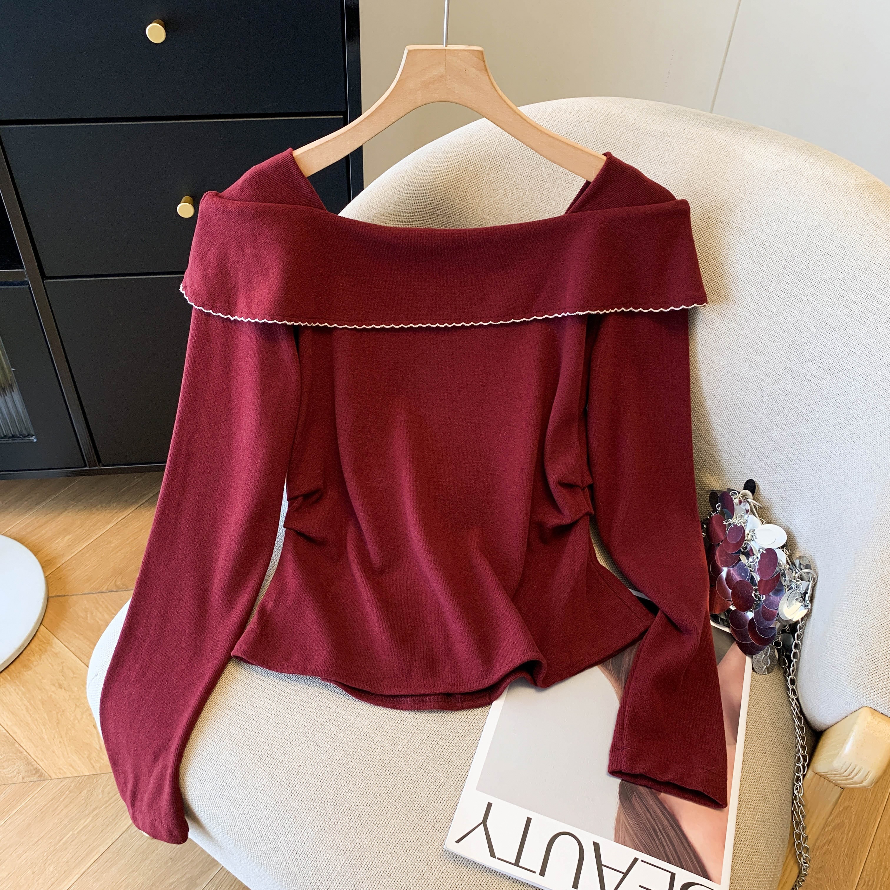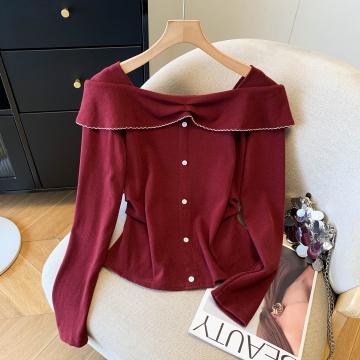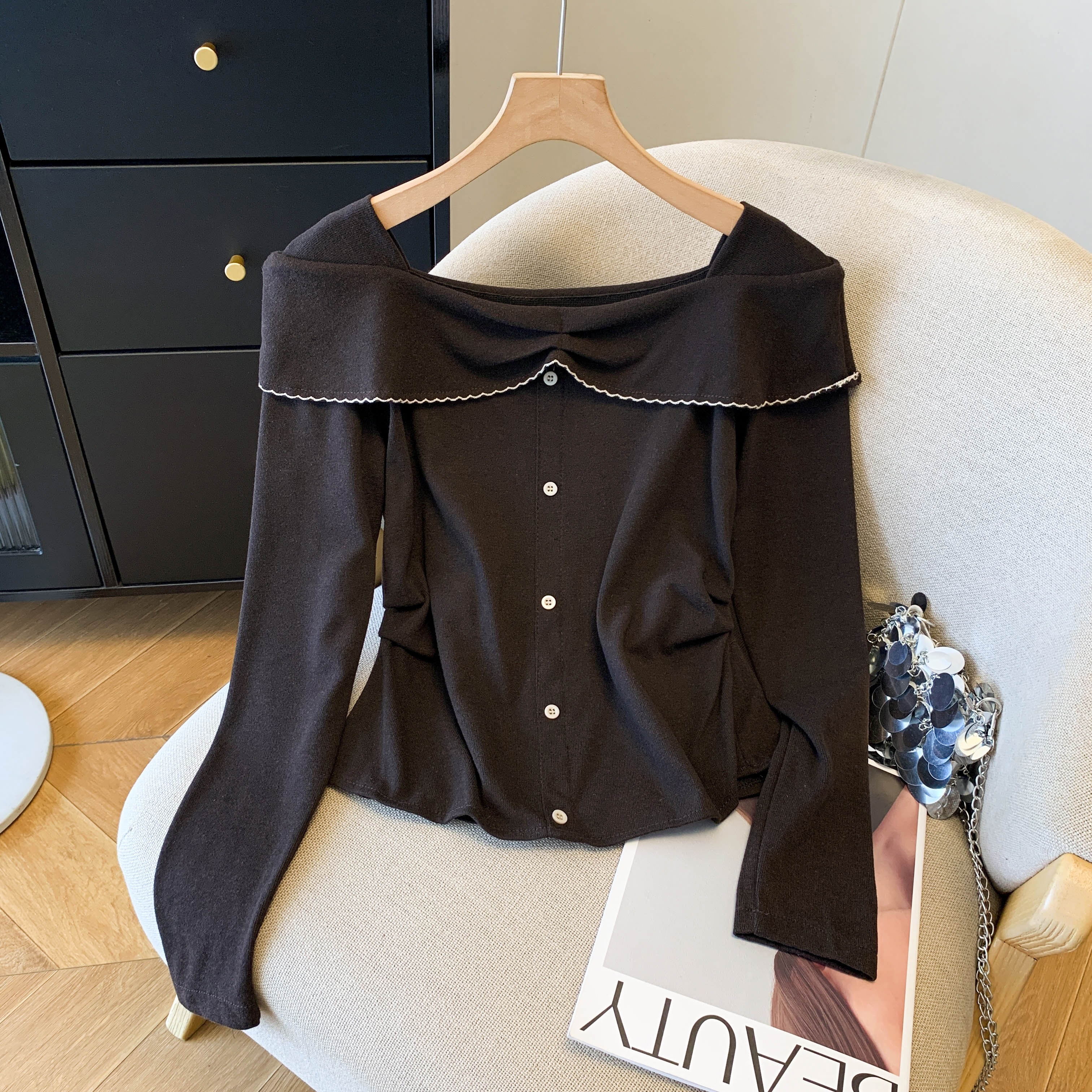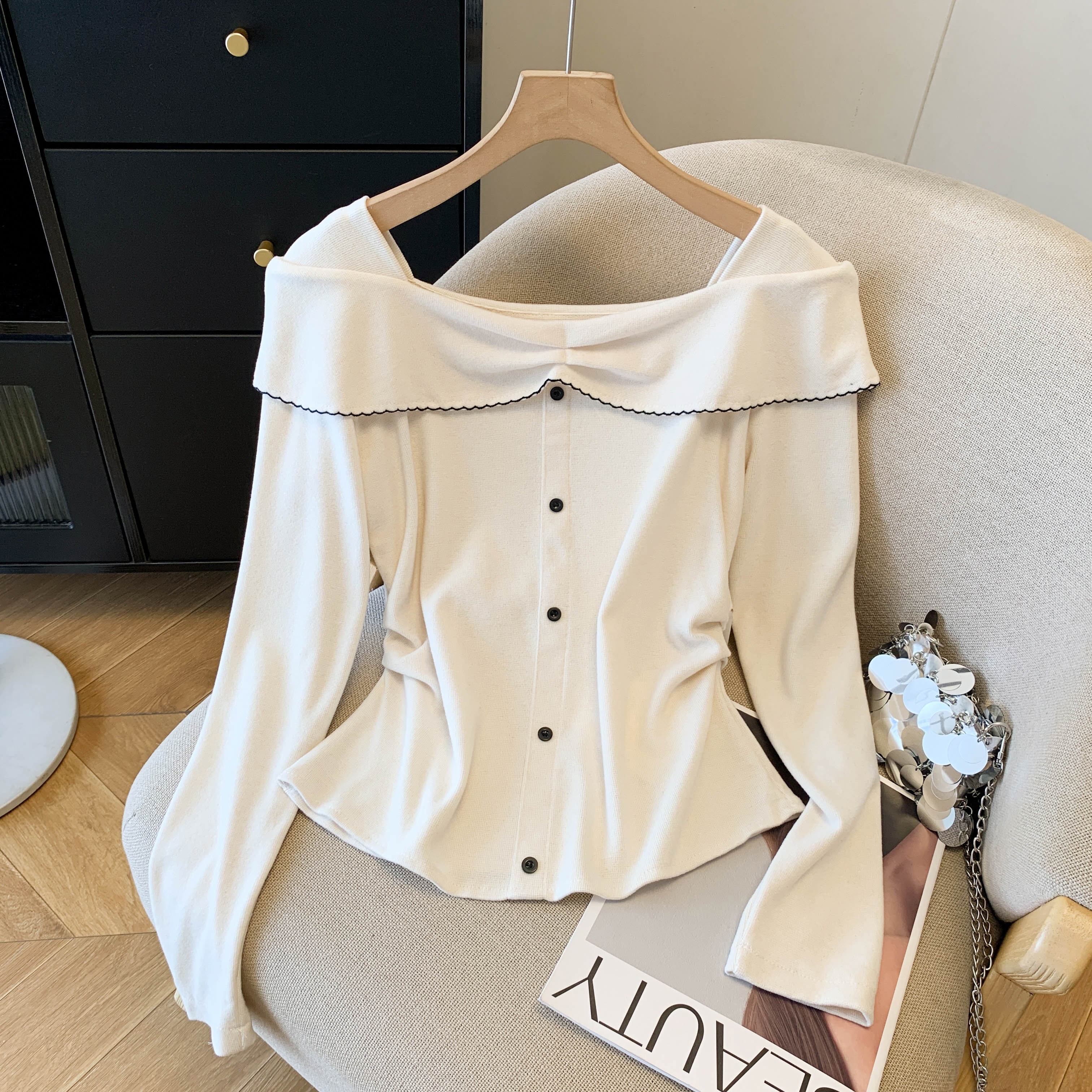 FA43238# 秋冬新款法式一字肩翻领加厚衬衫女百搭高级感气质上衣 服裝批發女裝批發服飾貨源