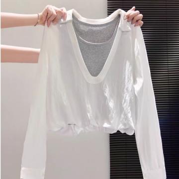 FA43322# 韩系拼接假两件长袖衬衫女秋季新款宽松显瘦小衫潮 服裝批發女裝批發服飾貨源