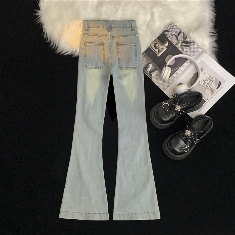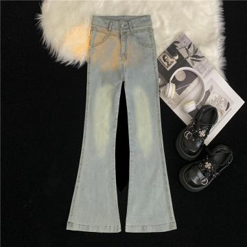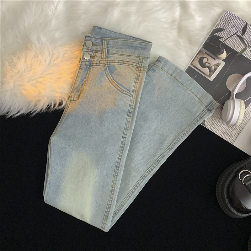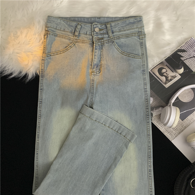 FA43746# 浅色九分竹节高弹力牛仔裤女大码双扣高腰显瘦窄版休闲直筒裤 服裝批發女裝批發服飾貨源