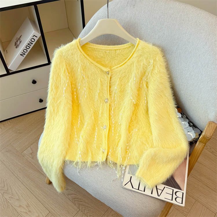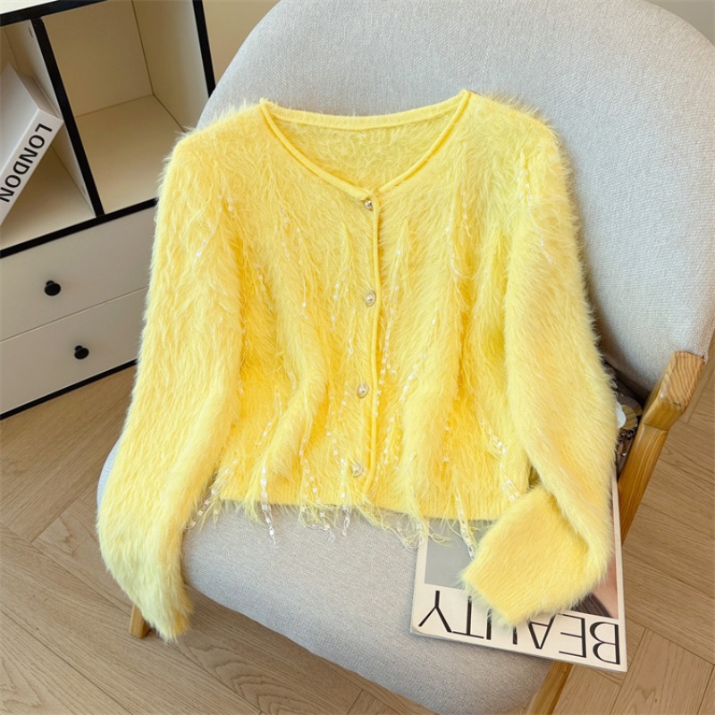 FA43840# 名媛风气质高级感流苏毛毛针织衫女秋小众设计宽松长袖单排扣 服裝批發女裝批發服飾貨源