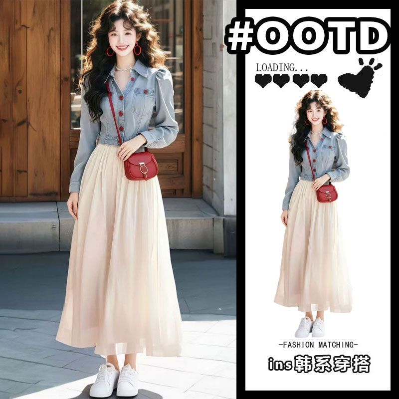 FA44663# 法式设计感牛仔半身裙女秋季新款收腰显瘦长裙子时尚女装套装 服裝批發女裝批發服飾貨源