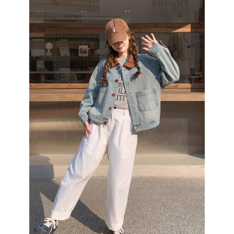 FA44683# 蓝色复古小个子牛仔外套女短款春新款今年流行设计感夹克上衣 服裝批發女裝批發服飾貨源