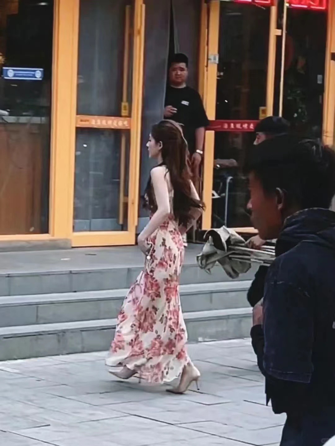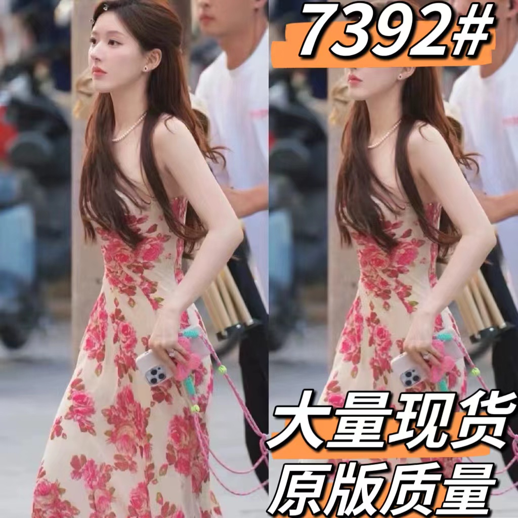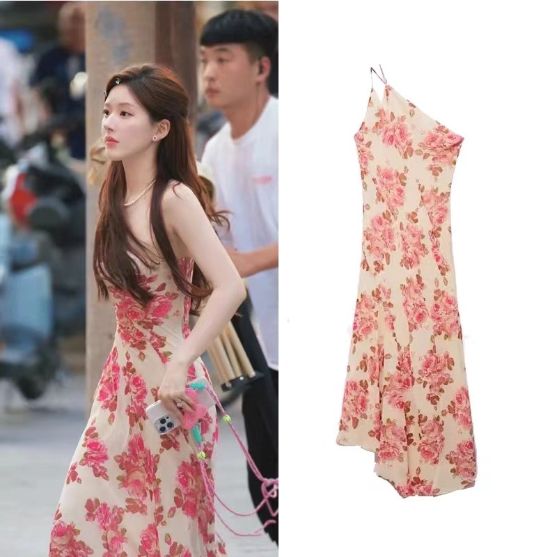 LN76333# 许我耀眼赵露思许妍同款斜肩吊带裙碎花裙印花连衣裙长裙子女夏季