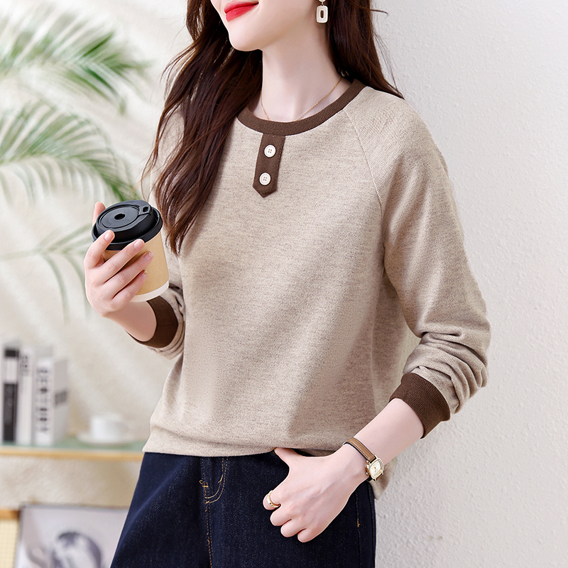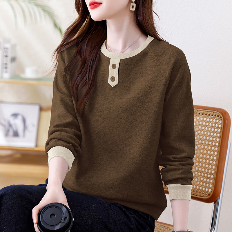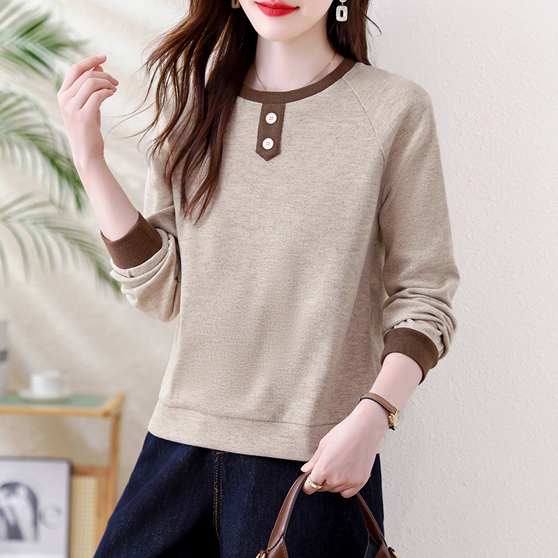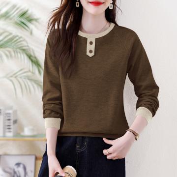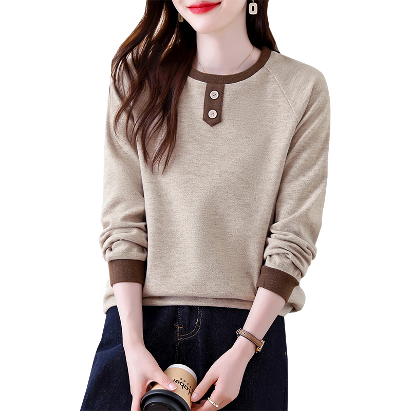 FA44836# 秋冬撞色拼接磨毛卫衣女圆领长袖上衣 服裝批發女裝批發服飾貨源