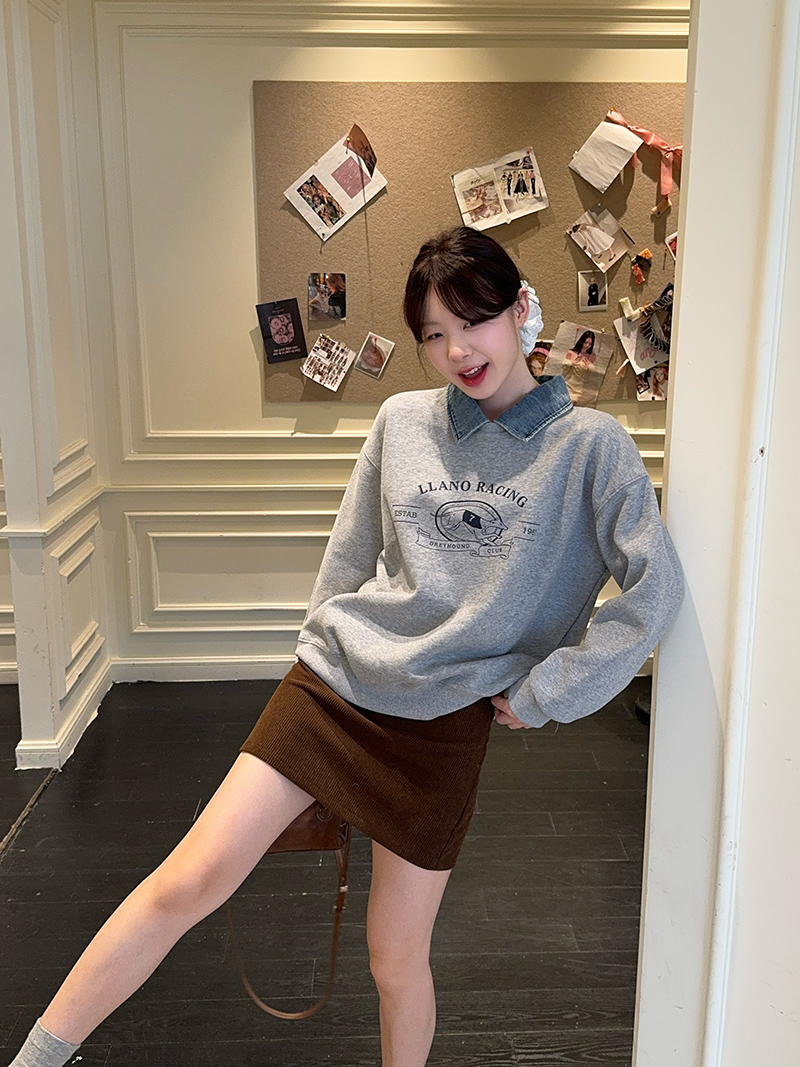 FA44853# 假两件卫衣女新款加绒加厚秋冬潮宽松卡通POLO领保暖上衣 服裝批發女裝批發服飾貨源