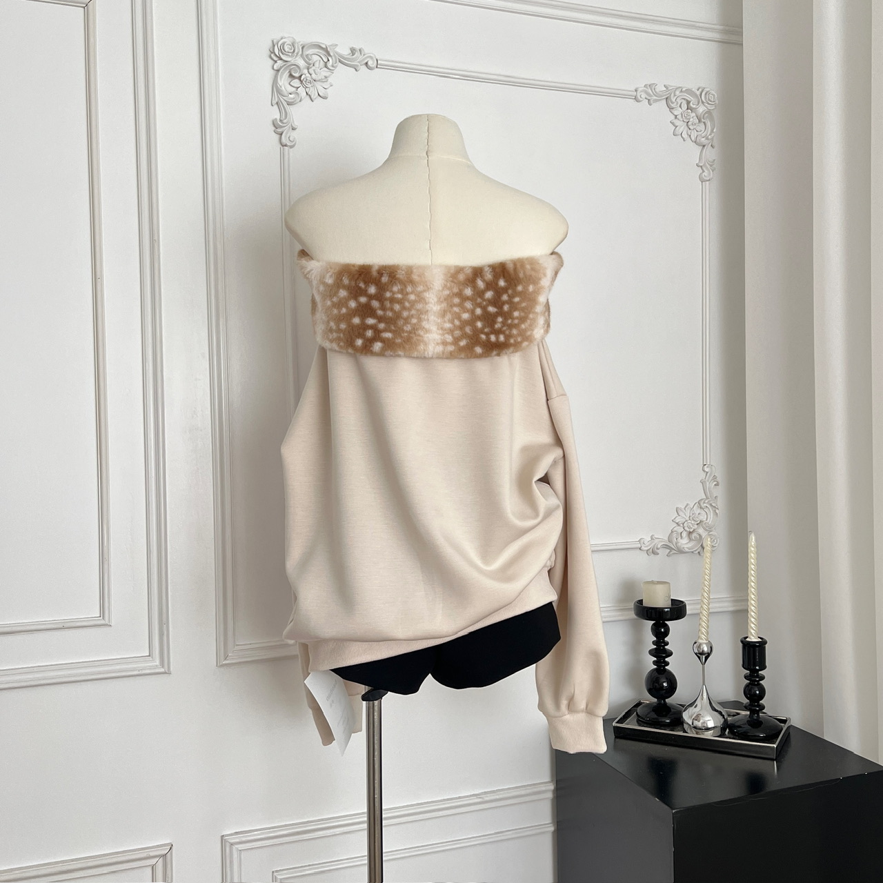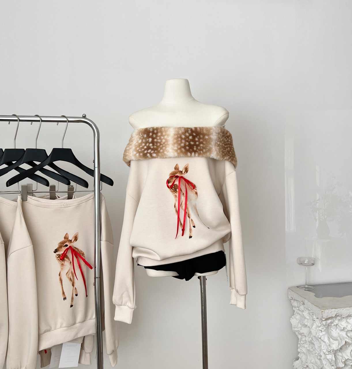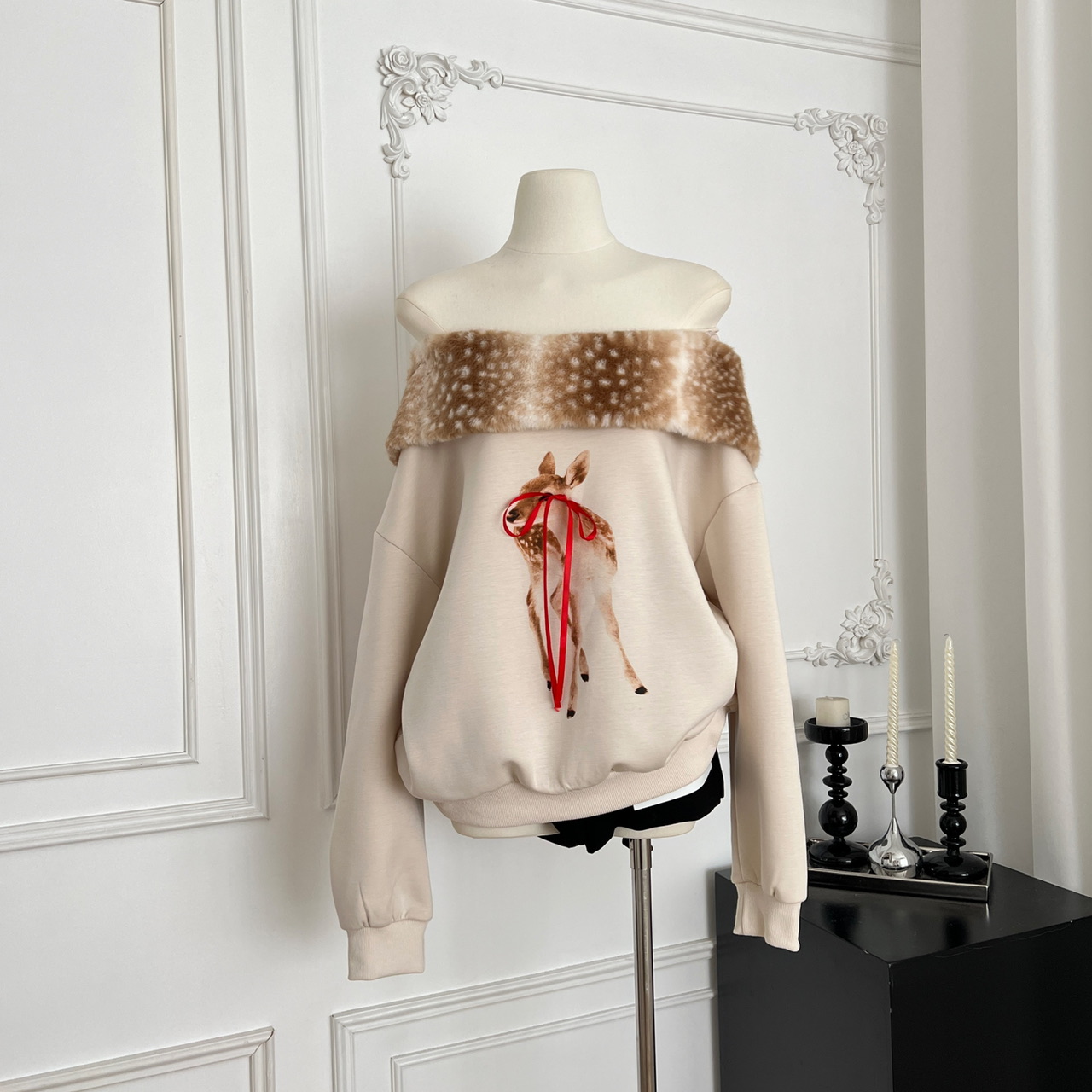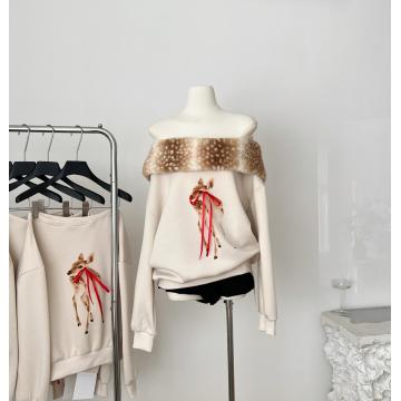 FA45054# 小鹿印花软糯毛领卫衣女立体秋冬新款蝴蝶结套头衫上衣 服裝批發女裝批發服飾貨源
