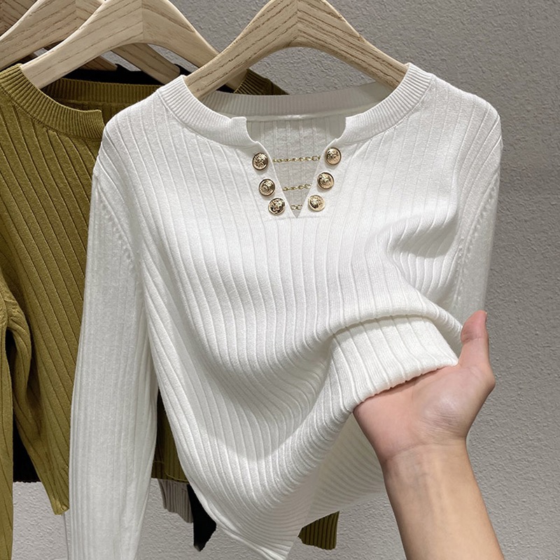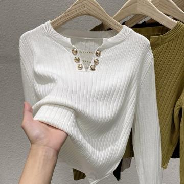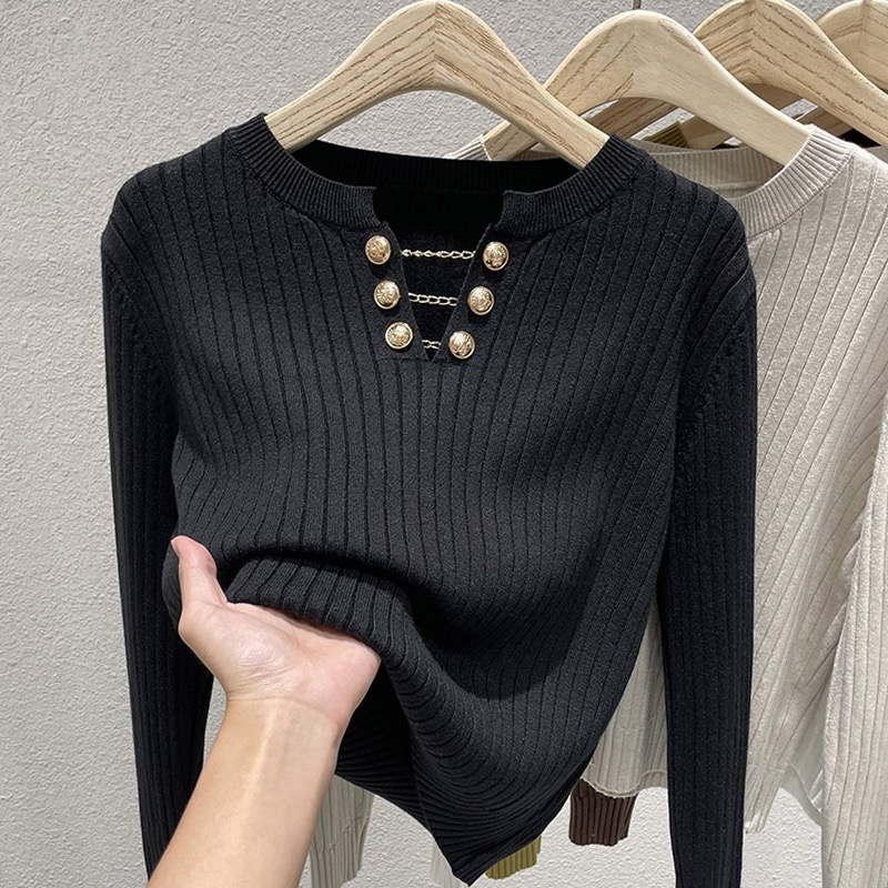 FA45211# 链条设计高级感V领针织衫女装秋冬新款长袖内搭显瘦毛衣上衣 服裝批發女裝批發服飾貨源