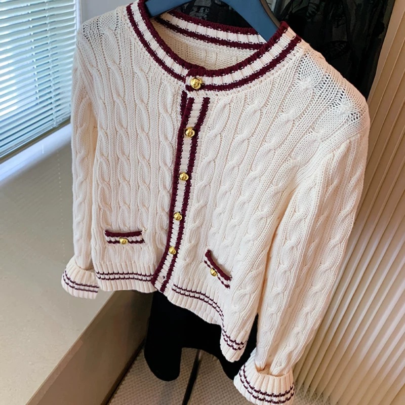 FA45345# 小香风软糯麻花针织开衫女秋冬新款高级感金扣毛衣设计 服裝批發女裝批發服飾貨源