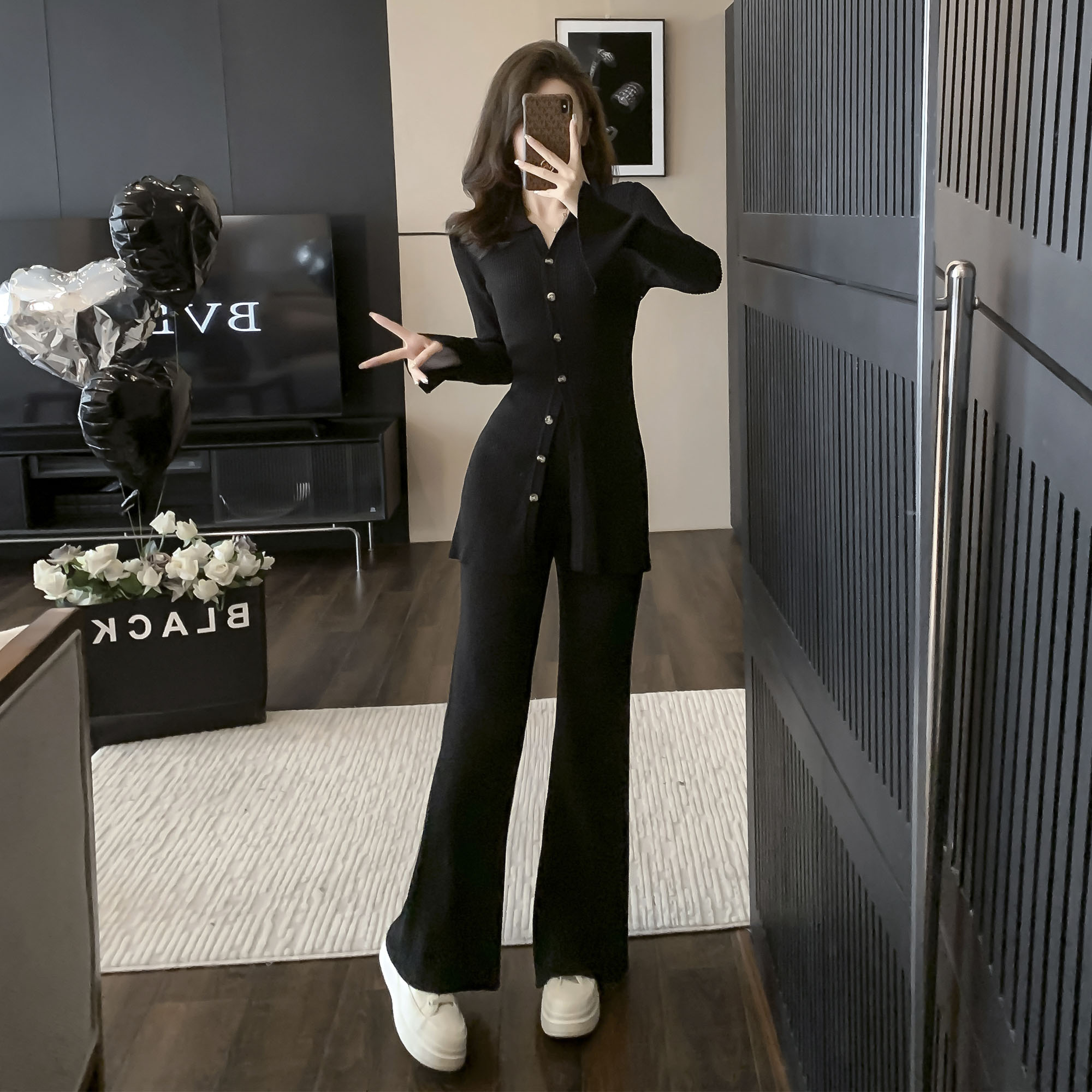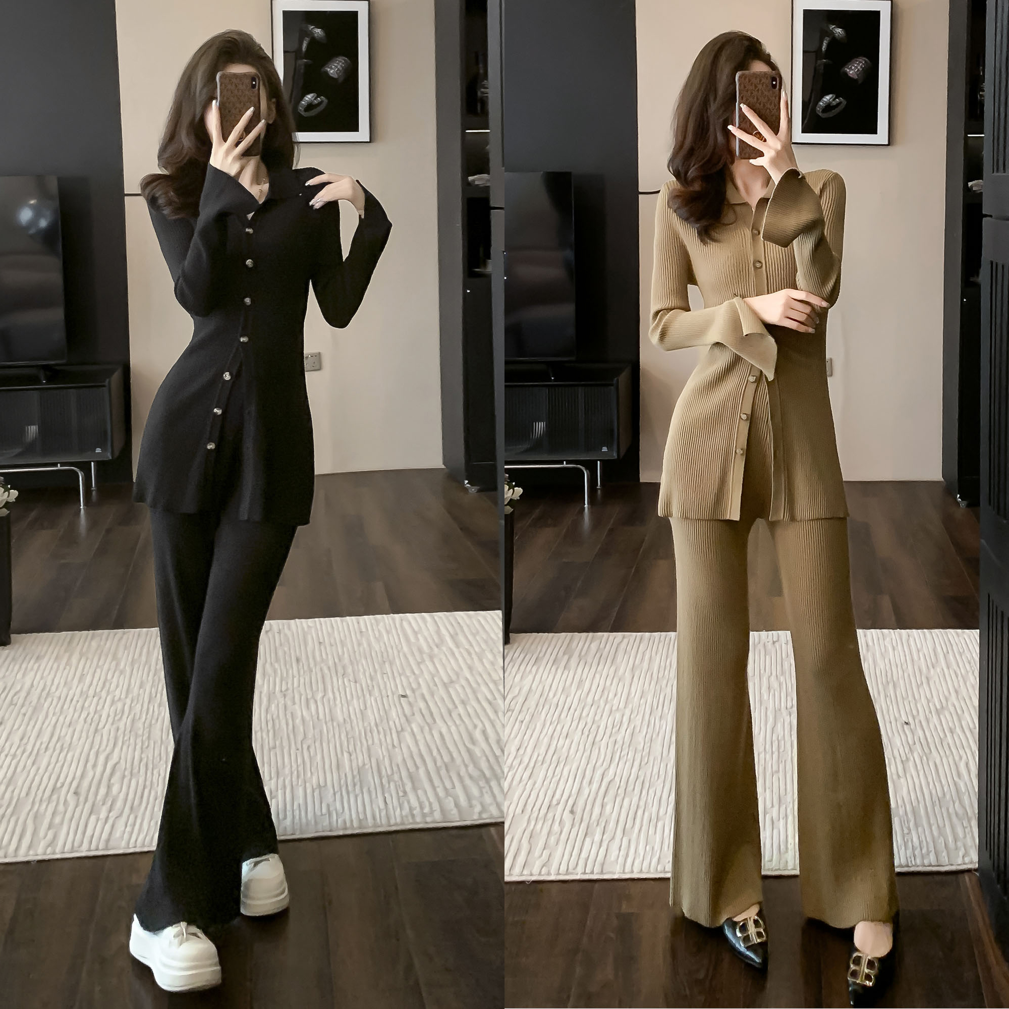 FA46885# 小香风名媛高级感小众翻领针织套装秋季新款炸街宽松阔腿裤两件套 服裝批發女裝批發服飾貨源