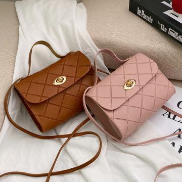 FA47421# 韩版都市简约PU菱格单肩斜挎包锁扣小方包 女包批发包包批发货源