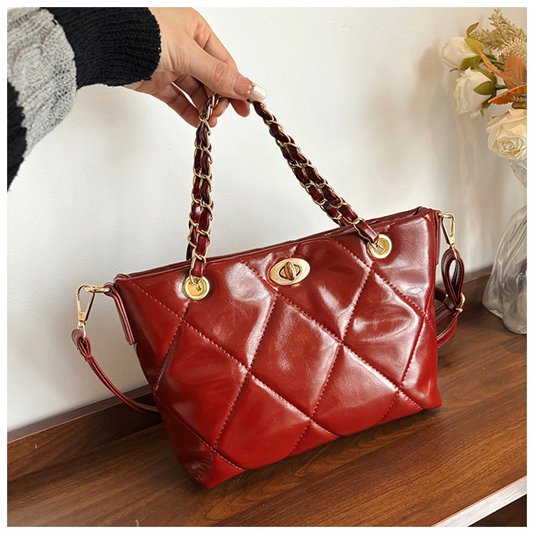 FA47426# 欧美复古洋气链条手拎女包新款韩版时尚菱格休闲单肩斜挎大包 女包批发包包批发货源