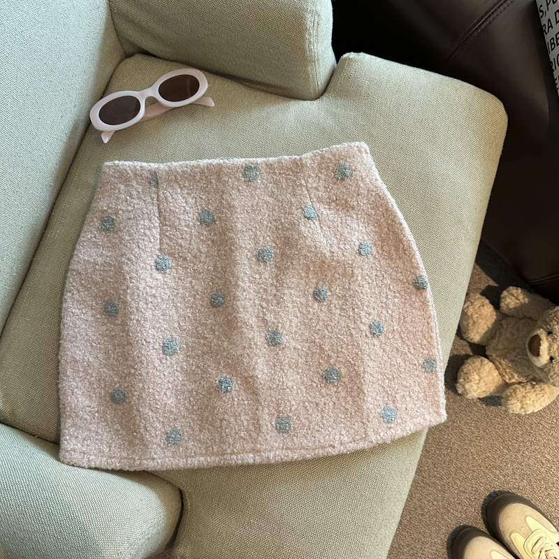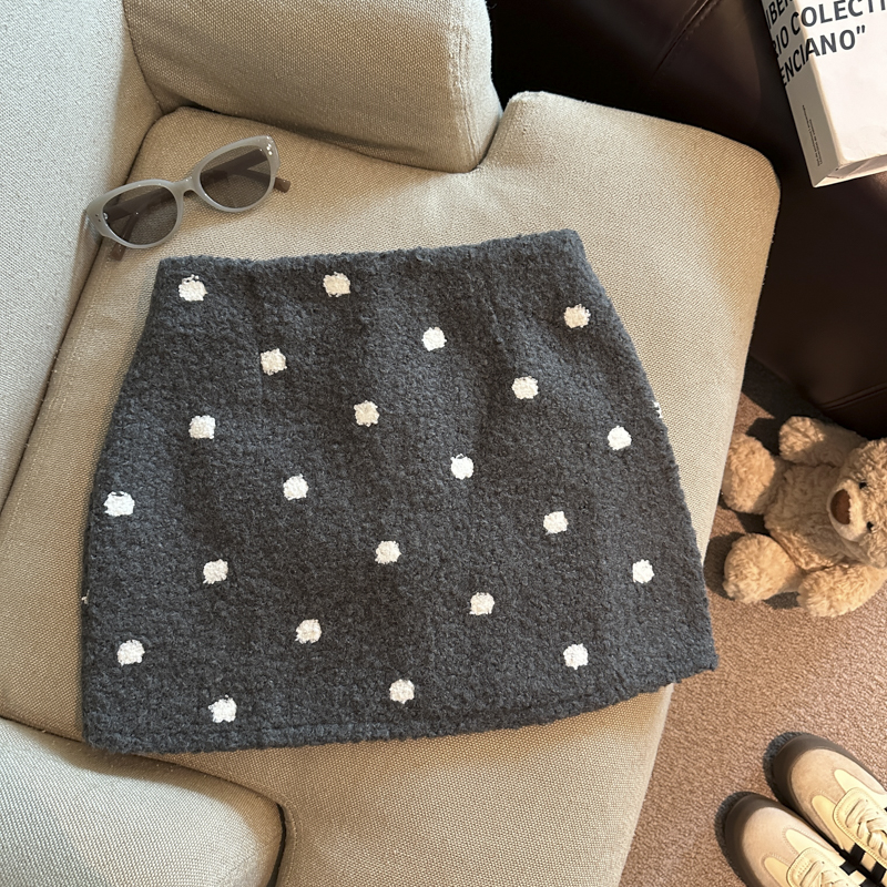 韩系甜美气质复古圈圈呢休闲半身裙女冬季新款时尚显瘦短裙 服裝批發女裝批發服飾貨源