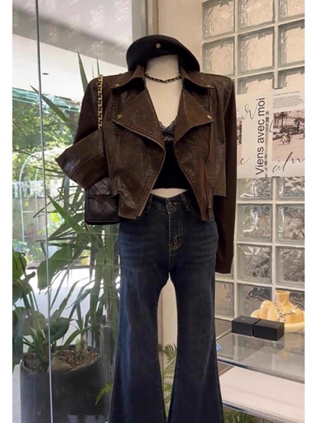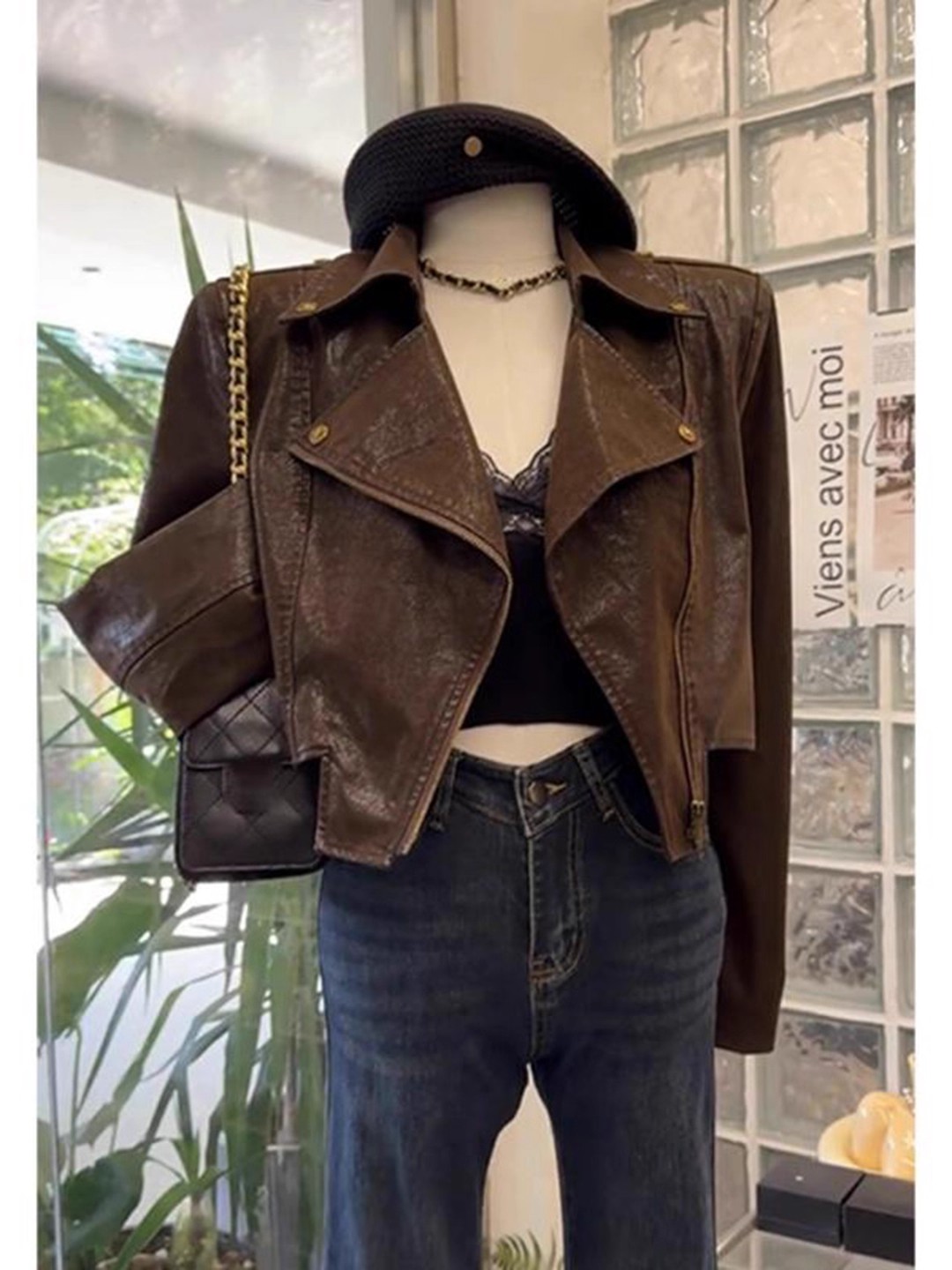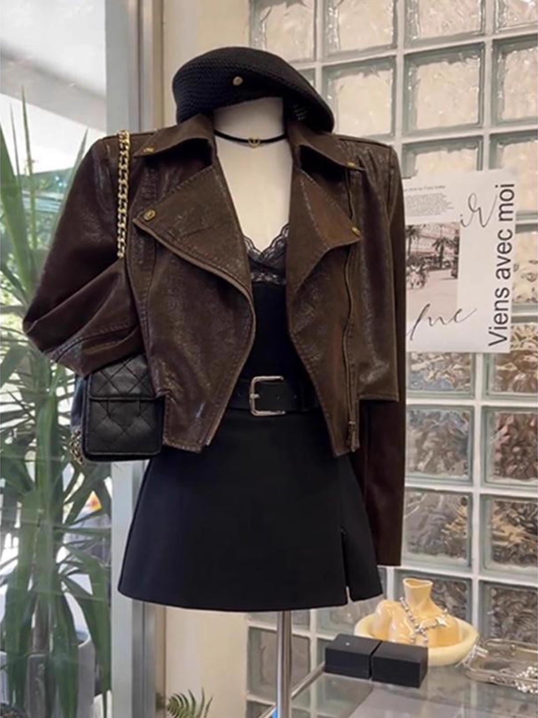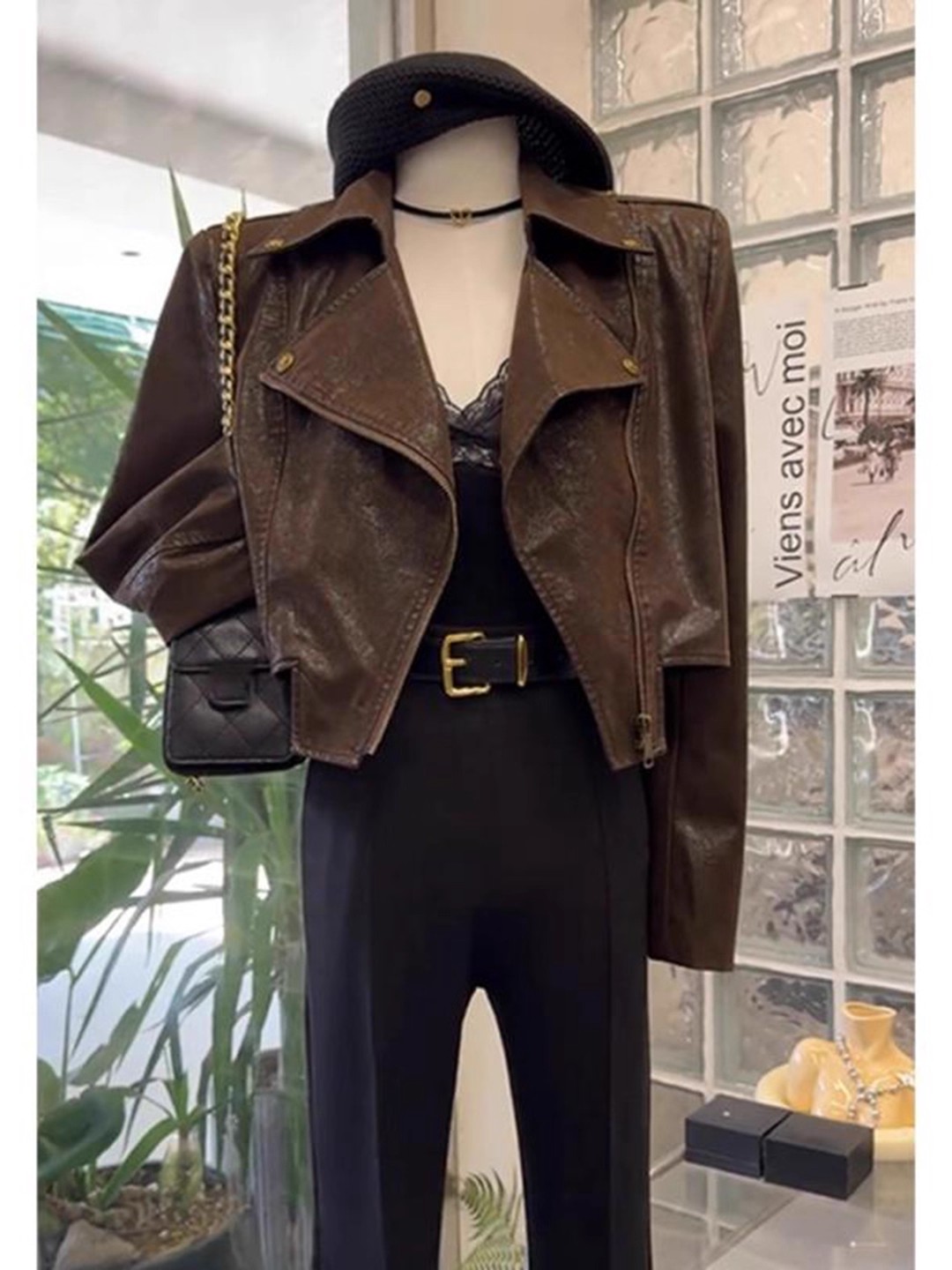 咖色皮衣外套