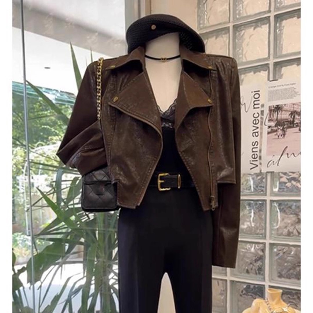 FA47695# 小个子气质休闲咖色短外套女装秋冬新款御姐又a又飒夹克上衣 服裝批發女裝批發服飾貨源