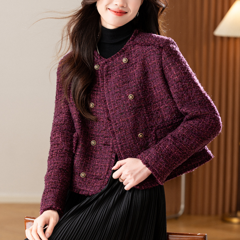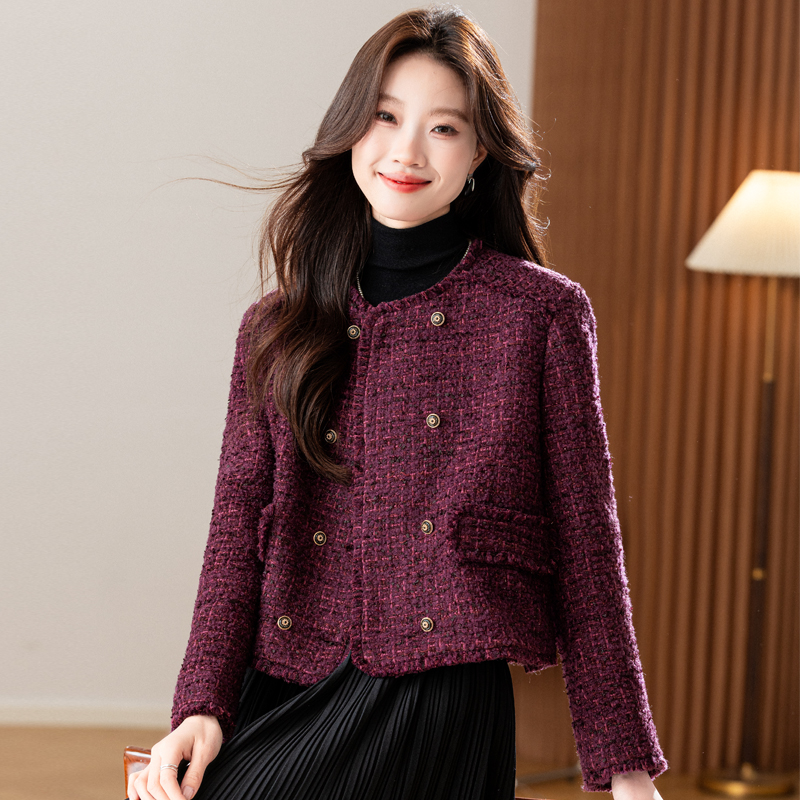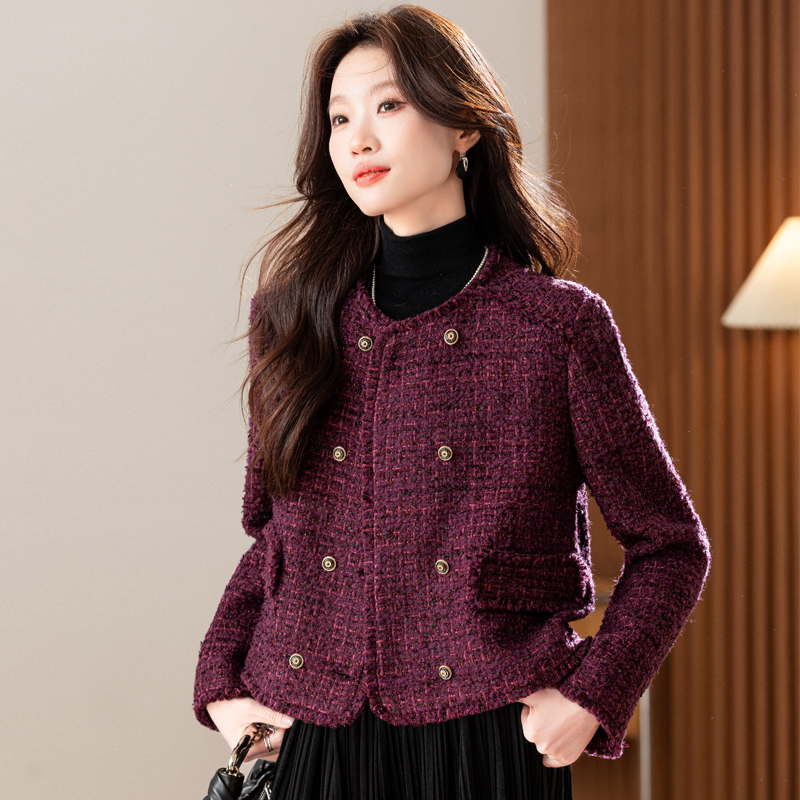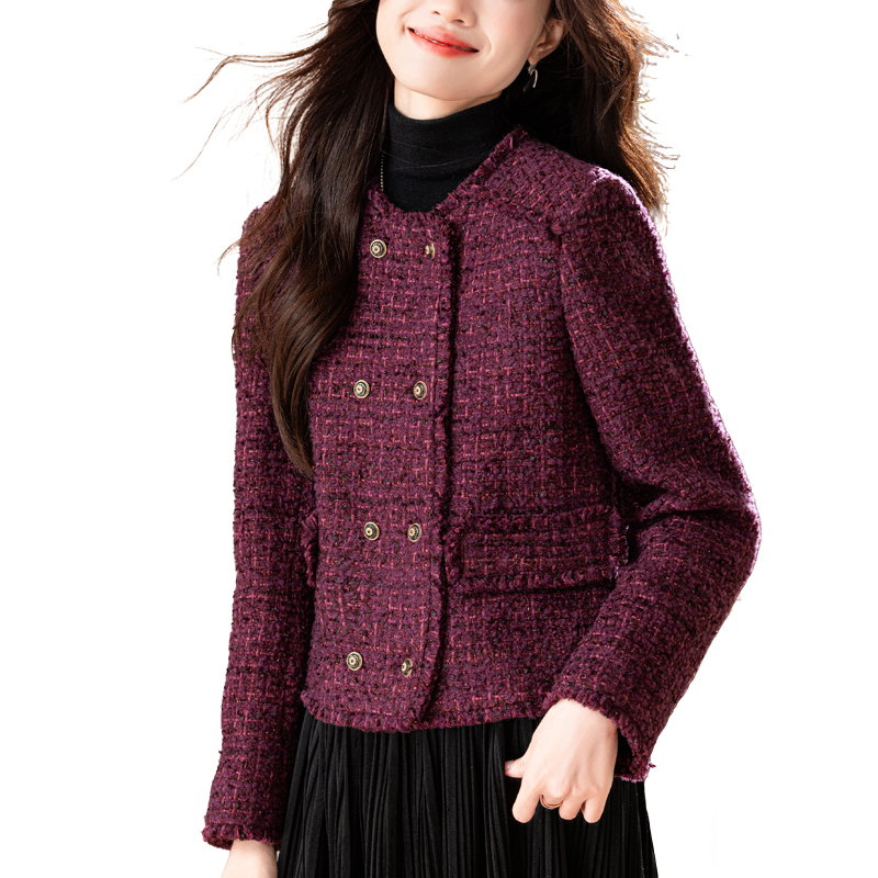 双排扣直角肩设计短款箱型粗花呢香风外套 服裝批發女裝批發服飾貨源