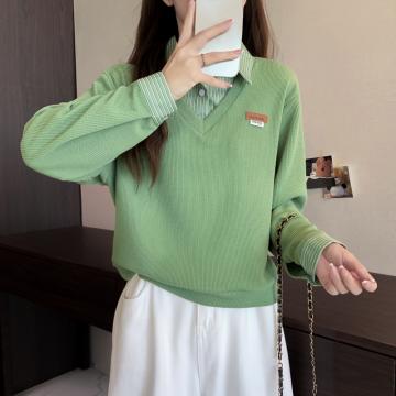 大码长袖加厚保暖假两件绑带T恤女装时尚显瘦百搭减龄打底衫 服裝批發女裝批發服飾貨源