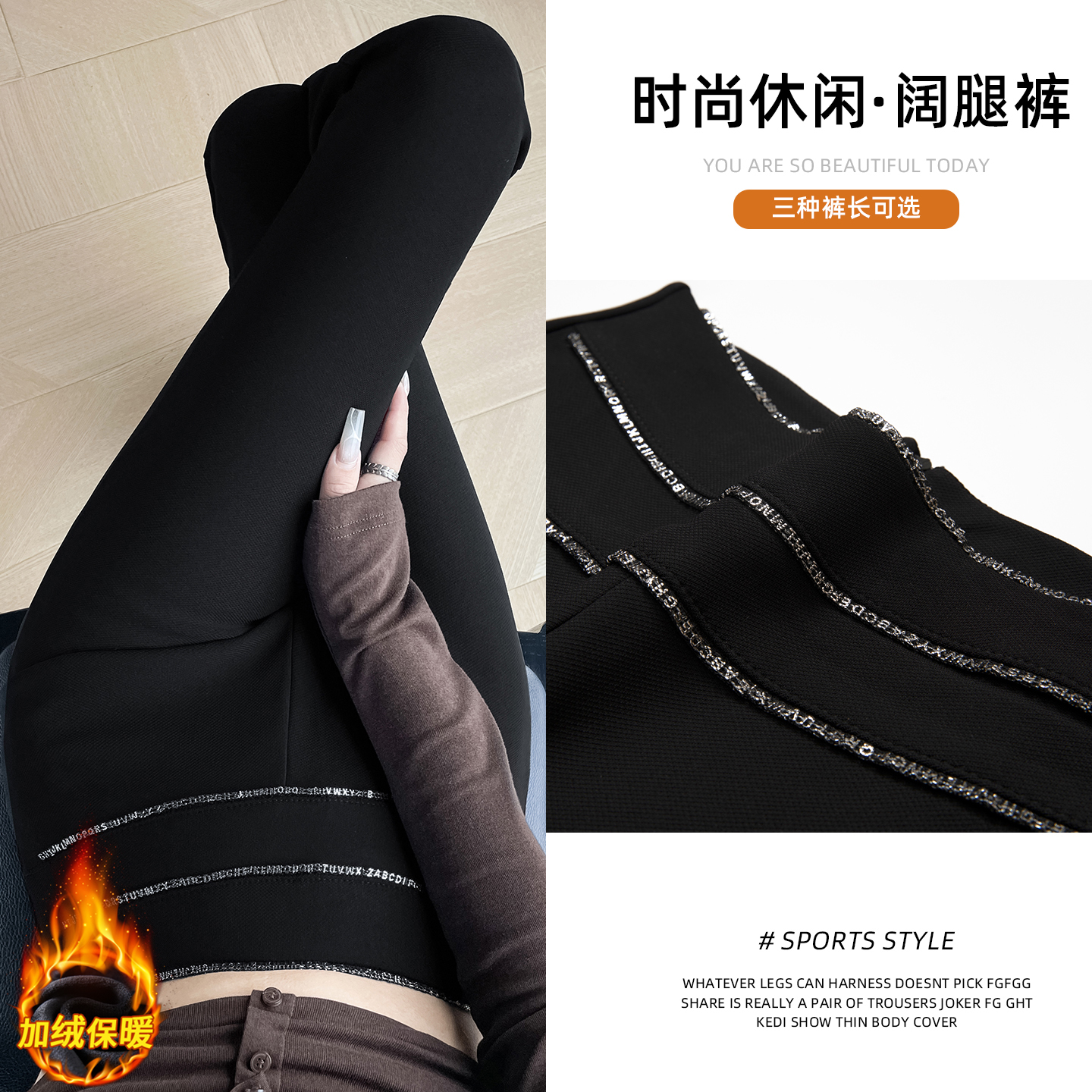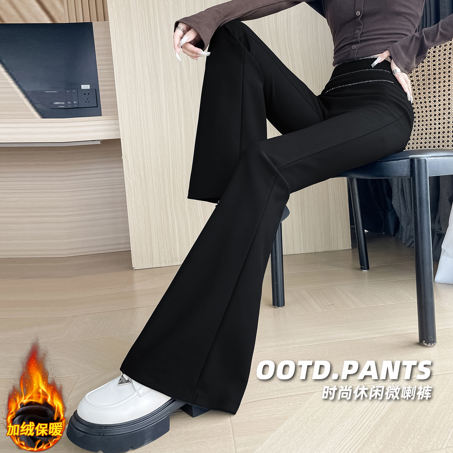 Home > 牛仔裤、长裤 > FA48889# 加绒加厚喇叭裤精致小字母链条高腰弹力显瘦垂感修身马蹄裤微喇裤 服裝批發女裝批發服飾貨源