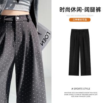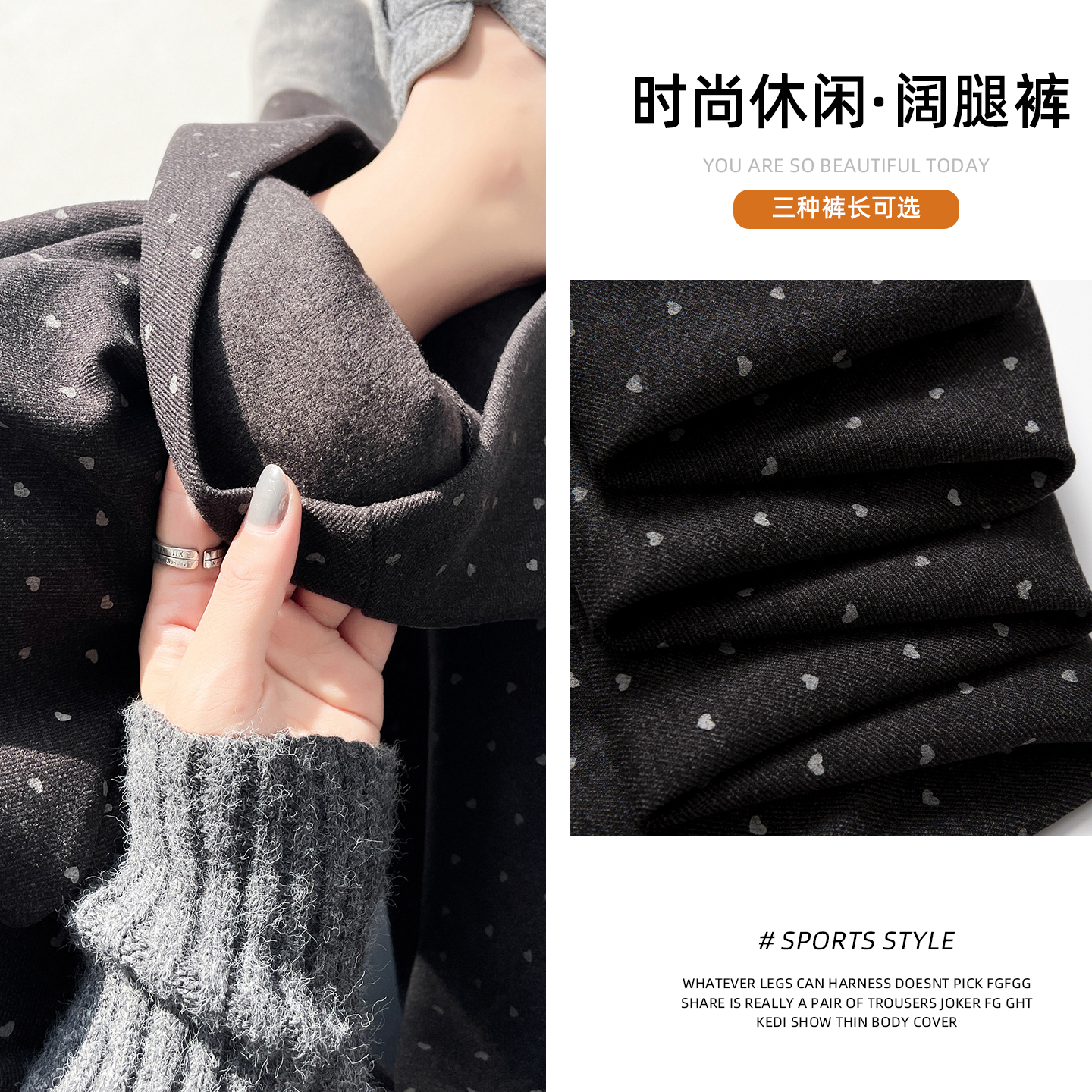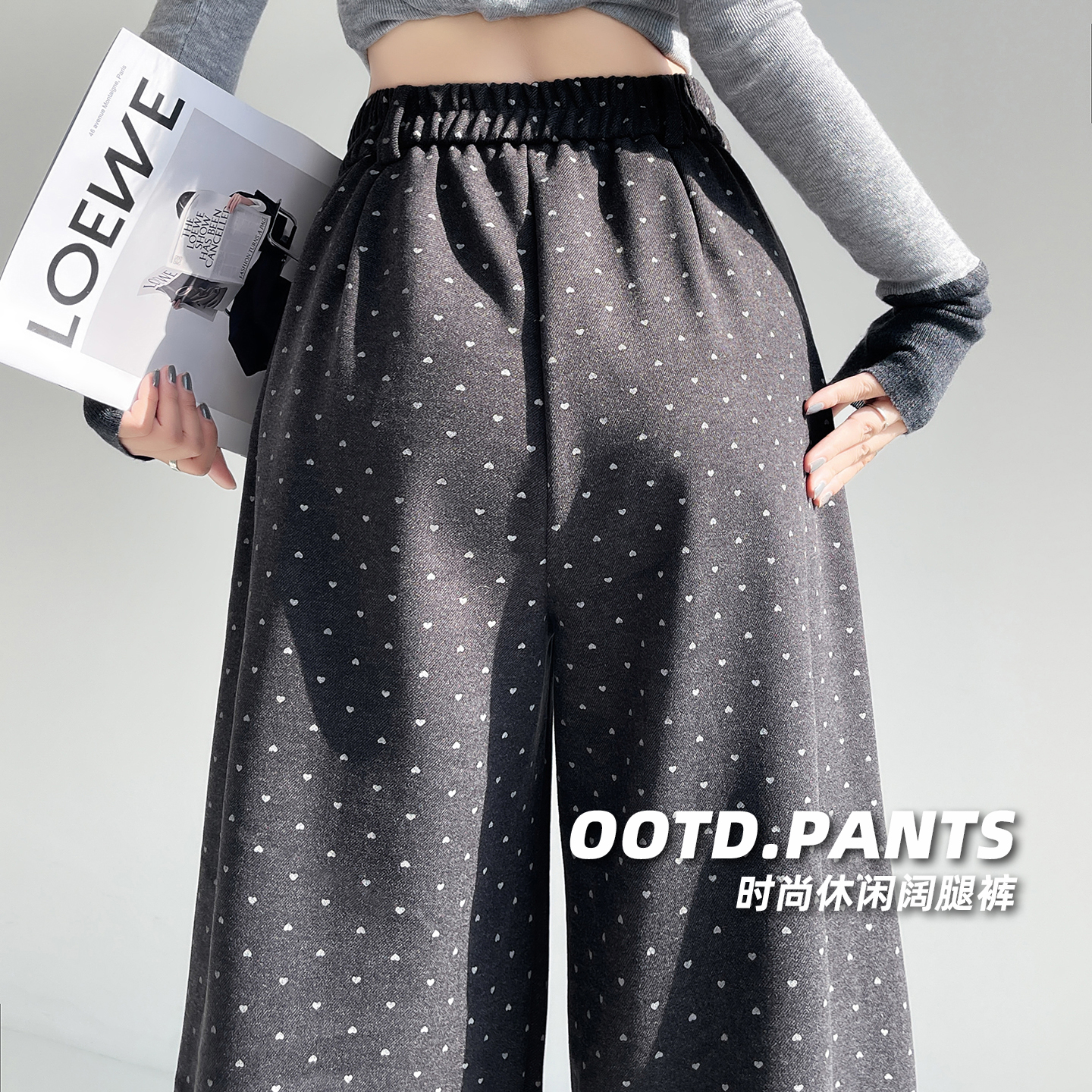 FA48890# 秋冬韩系甜美复古加厚磨毛尼子爱心休闲裤后松紧高腰阔腿裤 服裝批發女裝批發服飾貨源
